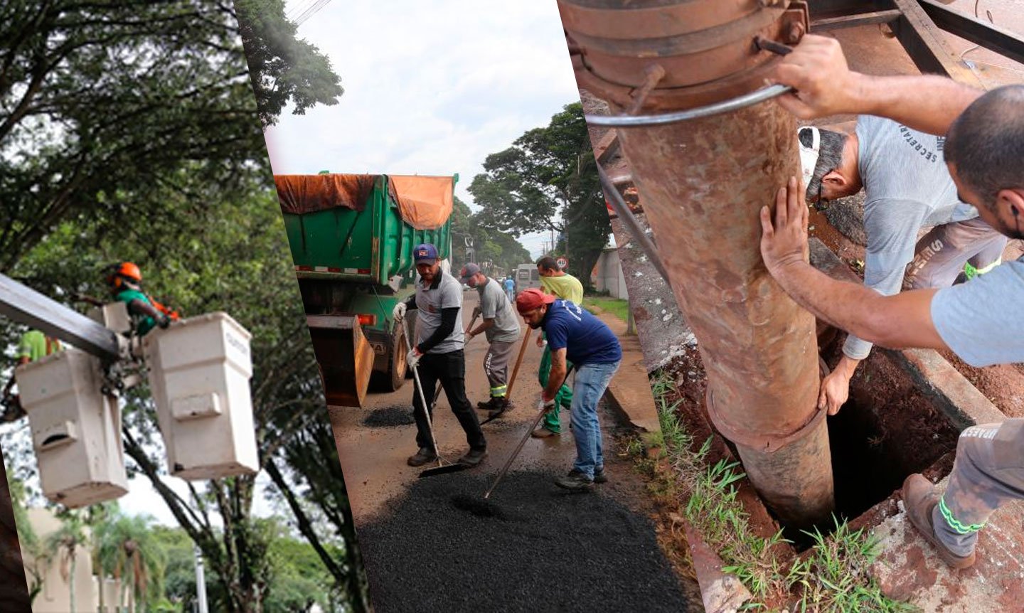 Durante o mutirão, serão realizados serviços como pavimentação asfáltica, troca de iluminação pública, arborização, com poda e corte de árvores onde há autorização técnica pelo engenheiro florestal, limpeza de bueiros e galerias, pinturas das sinalizações horizontais, roçadas, plantio e replantio de árvores em locais estratégicos e recuperação de estradas rurais.