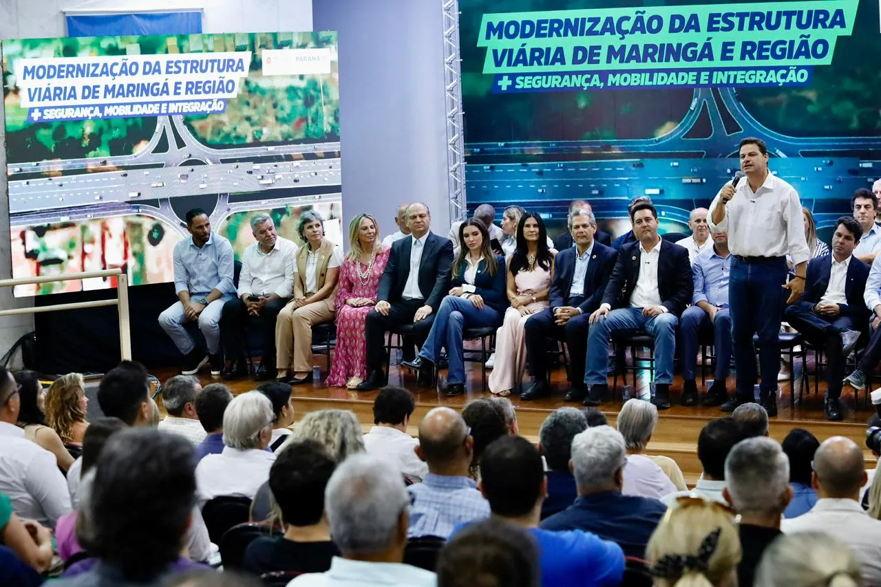 O governador Ratinho Júnior destacou a grandeza da iniciativa, ressaltando a parceria com a gestão municipal. “Estou muito feliz de poder… nos próximos meses, junto com a Prefeitura, iniciar uma das maiores obras da história de Maringá,” disse o governador.