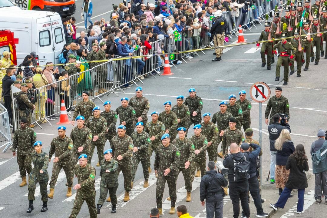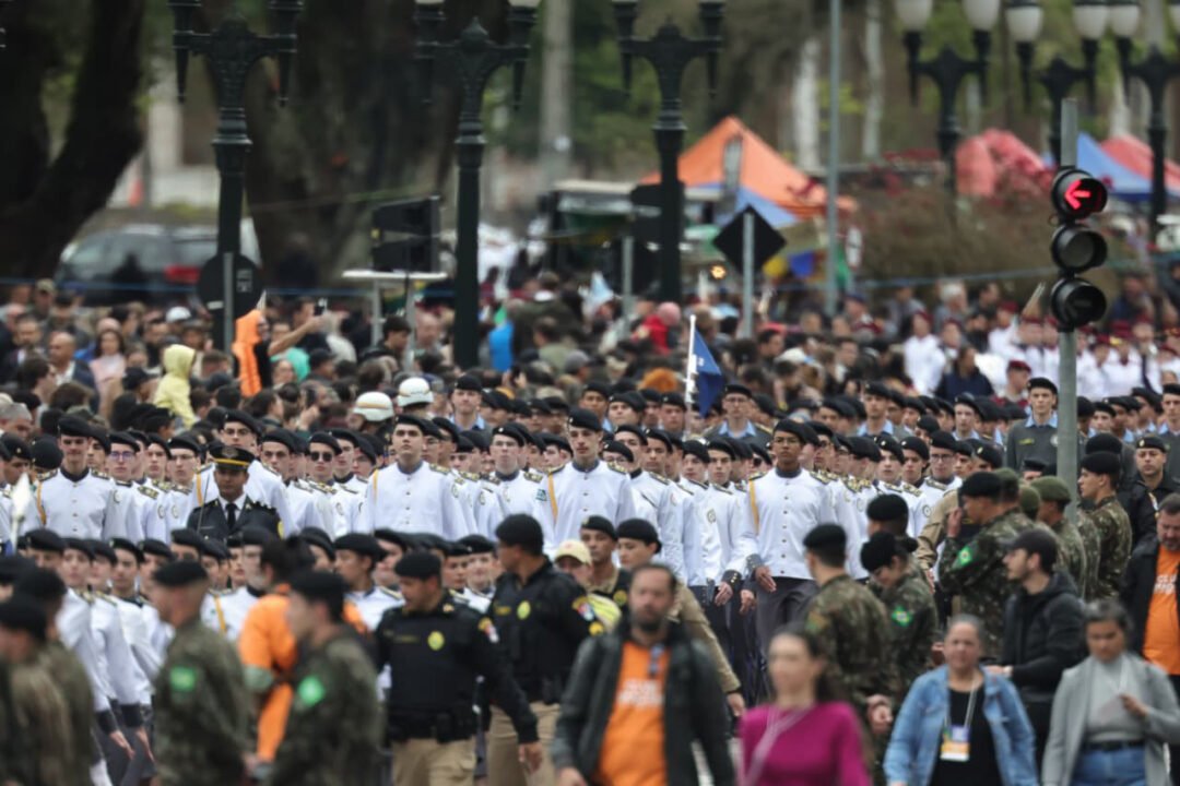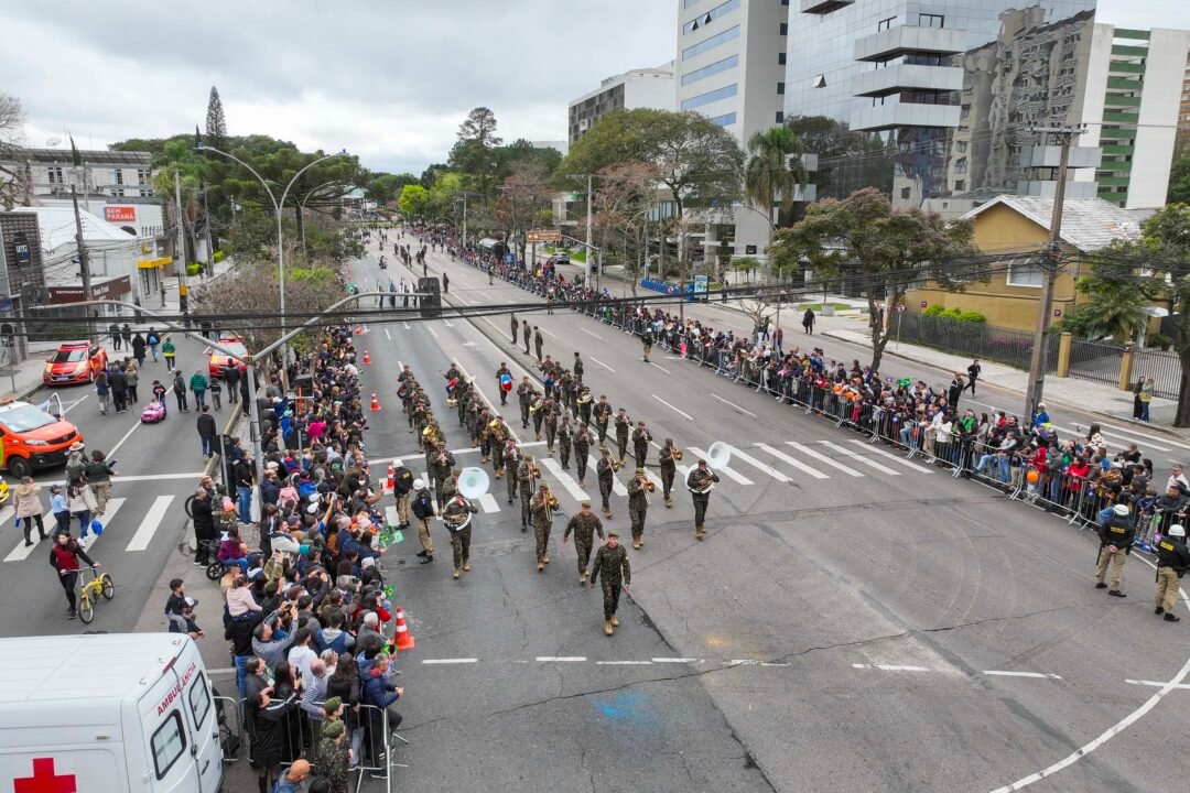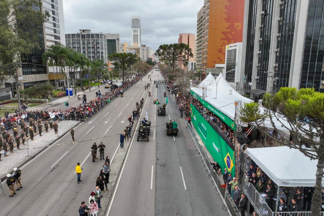 DESFILE – O desfile na Avenida Cândido de Abreu, contou com a participação de 6,5 mil pessoas, incluindo entidades civis como a Liga de Defesa Nacional, escoteiros, grupos de fanfarra e estudantes de colégios cívico-militares do Paraná. Já o desfile militar teve a participação da Legião Paranaense do Expedicionário, as Forças de Paz, Exército, Marinha e Aeronáutica e membros das forças estaduais de segurança pública, incluindo as polícias Militar, Civil, Penal e Científica e o Corpo de Bombeiros, além da Guarda Municipal.