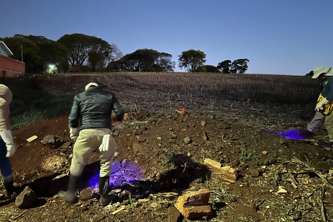 As ações noturnas, que contam com o apoio do Governo do Estado e dos agentes de endemias municipais, concentraram-se em áreas rurais, terrenos baldios e quintais de 15 municípios. A coordenadora de combate ao escorpião da Regional, Ângela Zacarias Tovani, explicou que “a caçada à noite proporciona melhores resultados às equipes. Utilizamos lanternas de luz ultravioleta, facilitando a captura.” Após a captura, os escorpiões são enviados para o Laboratório de Taxonomia do Paraná (Labtax) para identificação e contagem, subsidiando as ações de combate.