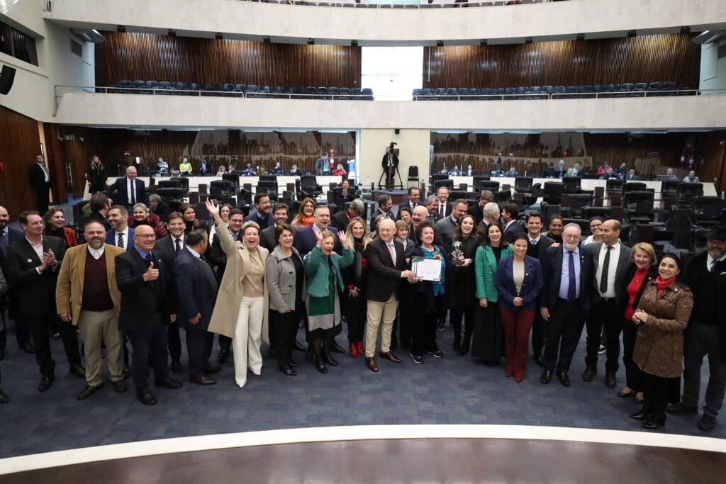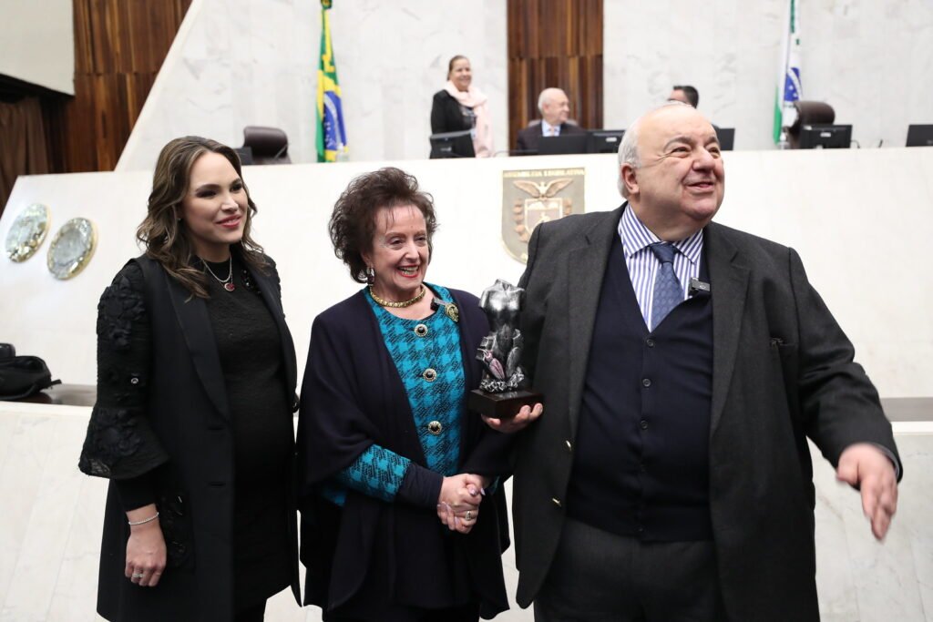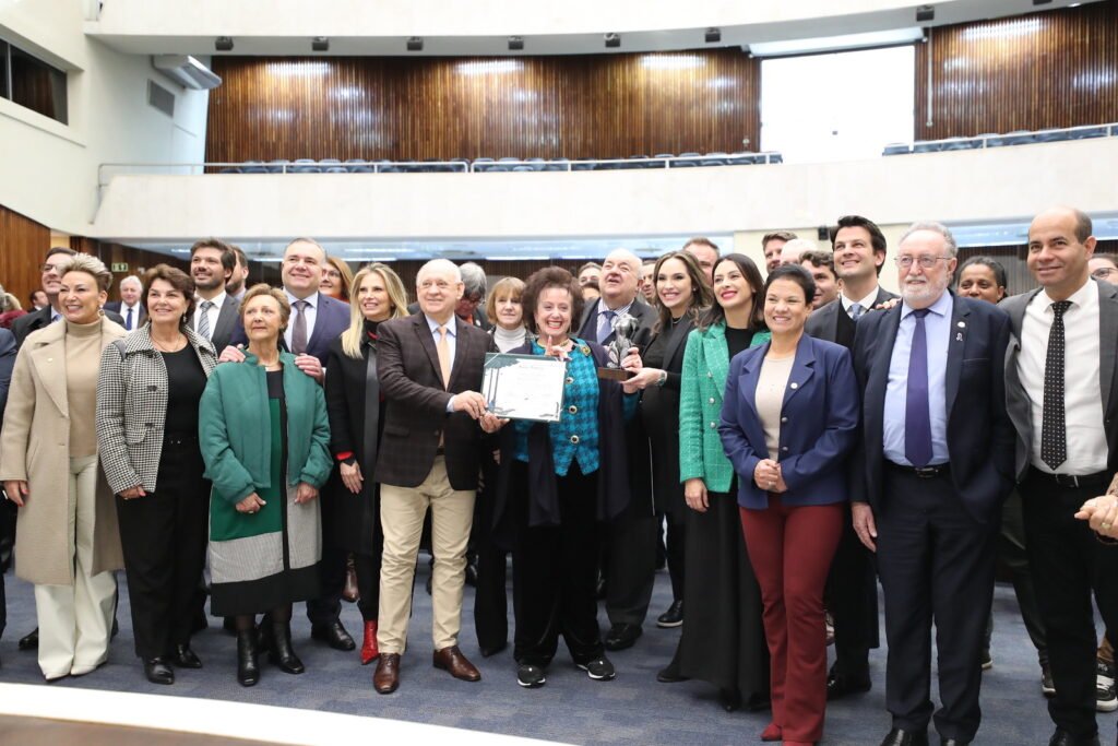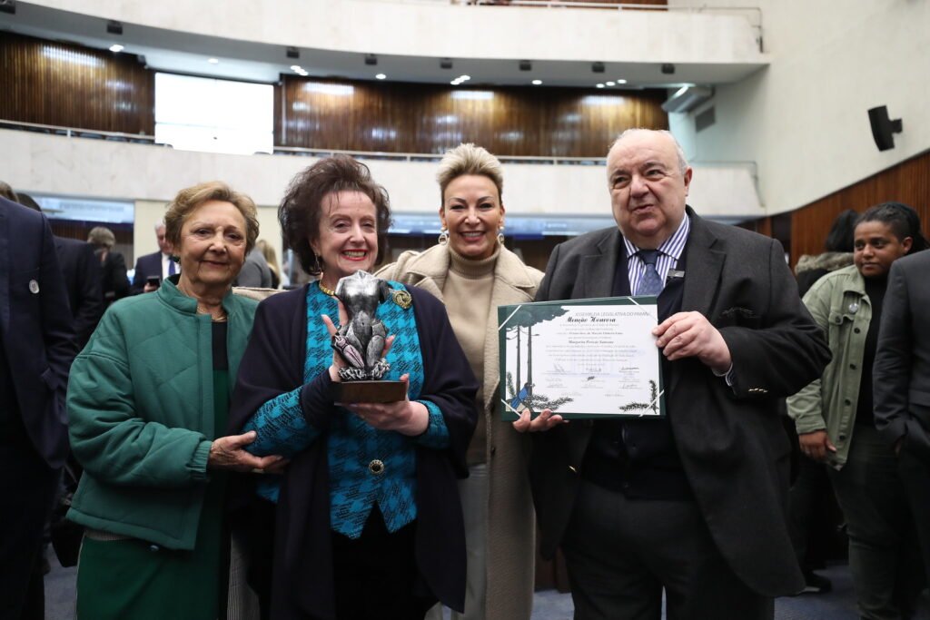No Grande Expediente da sessão plenária desta terça-feira (20) foi entregue o Prêmio Rosy de Macedo Pinheiro Lima à senhora Margarita Pericás Sansone, primeira-dama de Curitiba. A honraria é conferida anualmente pela Assembleia a mulheres indicadas pela Bancada Feminina, nas comemorações do Dia Internacional da Mulher, em 8 de março e em outros momentos especiais.