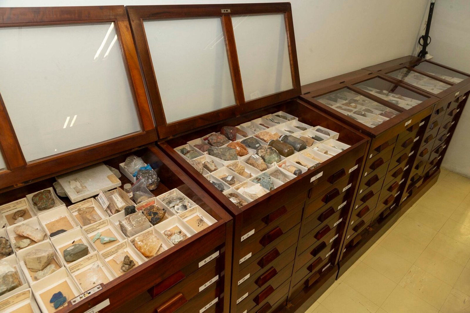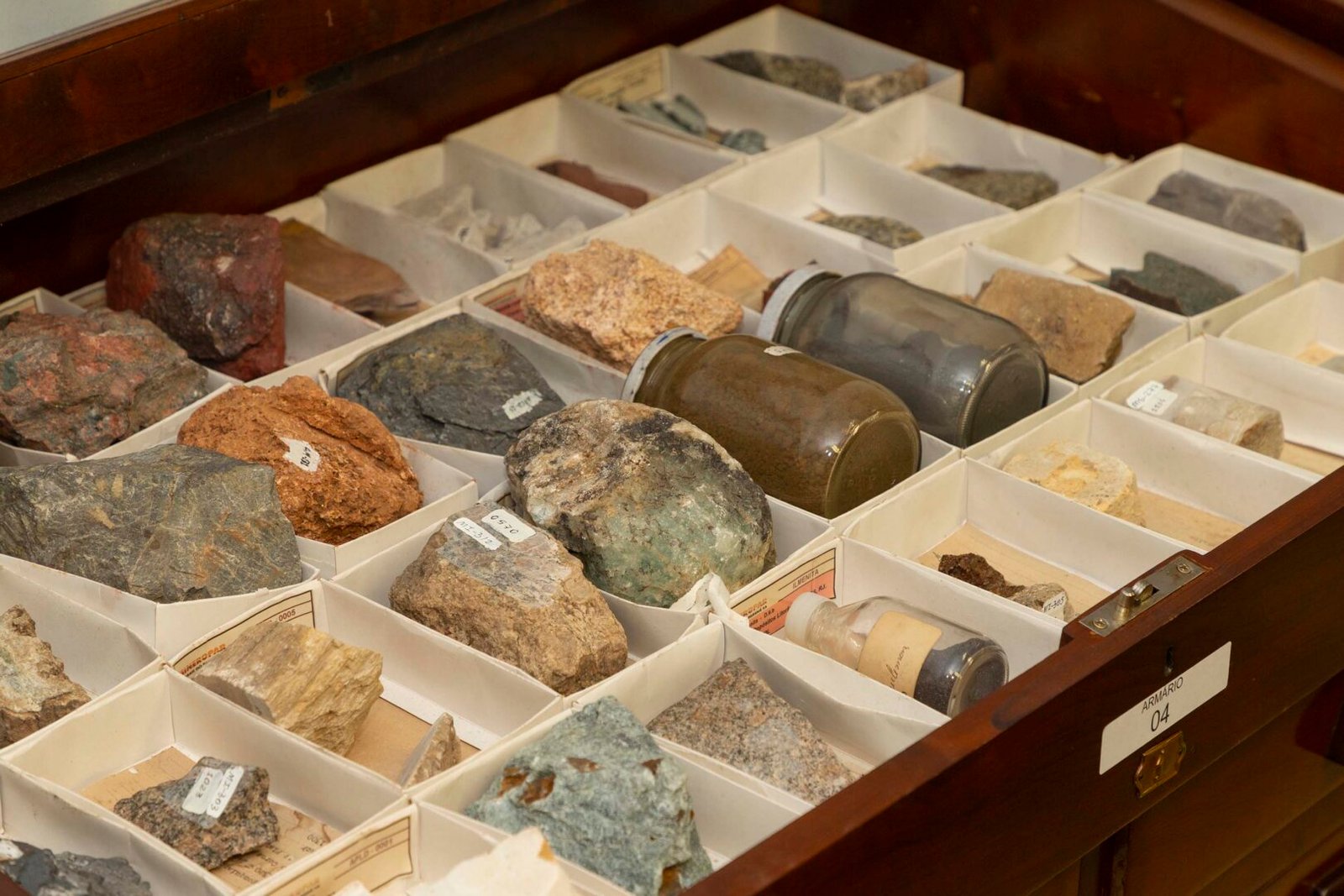 COLEÇÃO DE ROCHAS – Um dos destaques do acervo é a coleção com cerca de 2 mil amostras de rochas e minerais de todas as regiões do Brasil, coletadas pelo geólogo alemão Reinhard Maack e sua equipe entre 1940 e 1960, e outros objetos relacionados ao seu trabalho.