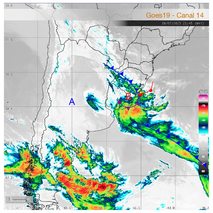 Uma frente fria avança pelo Rio Grande do Sul e já atinge o sudoeste e oeste do Paraná nesta quinta-feira, 17 de julho. A tendência é de queda nas temperaturas, aumento da nebulosidade, mudança na direção dos ventos e a ocorrência de chuvas isoladas com trovoadas esparsas nessas regiões. Apesar do deslocamento da frente fria por todo o estado, a instabilidade será pontual.