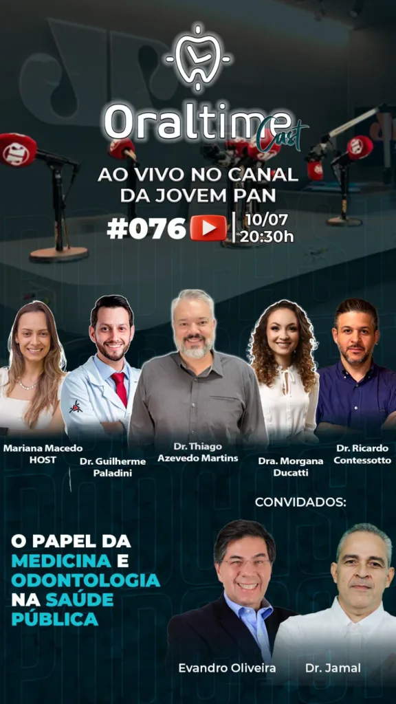 O foco da discussão será a importância da medicina e odontologia para a saúde pública em Maringá e região. O Podcast OralTime terá início às 20h30, transmitido ao vivo pelo YouTube da rádio Jovem Pan Maringá e compartilhado nas redes sociais.