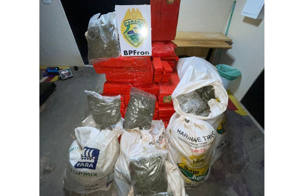 O Batalhão de Polícia de Fronteira (BPFron), unidade da Polícia Militar do Paraná, em ação conjunta com a Polícia Federal, apreendeu nesta terça-feira (30) mais de 600 quilos de drogas, em Guaíra, na região Oeste do Estado.