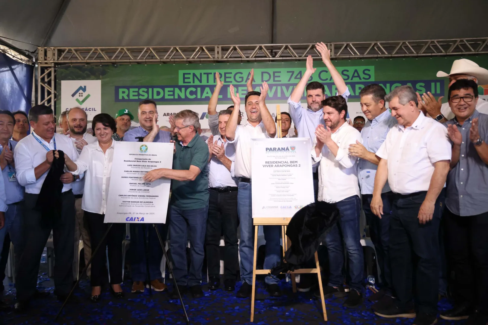 O governador Carlos Massa Ratinho Junior participou nesta sexta-feira (7) da inauguração de um conjunto 748 novas casas em Arapongas, no Norte do Paraná. O Bem Viver Arapongas II foi construído em formato de bairro planejado pela Construtora Pacaembu e recebeu um investimento de R$ 18 milhões do Governo do Estado por meio do programa Casa Fácil Paraná.