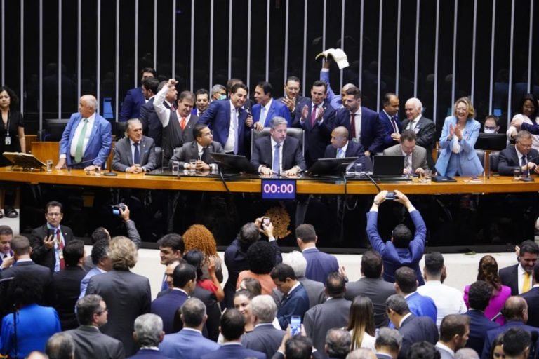 O bloco parlamentar que apoiou Arthur Lira reúne a Federação Brasil da Esperança (PT, do presidente Luiz Inácio Lula da Silva, PCdoB e PV) e o PL, do ex-presidente Jair Bolsonaro.