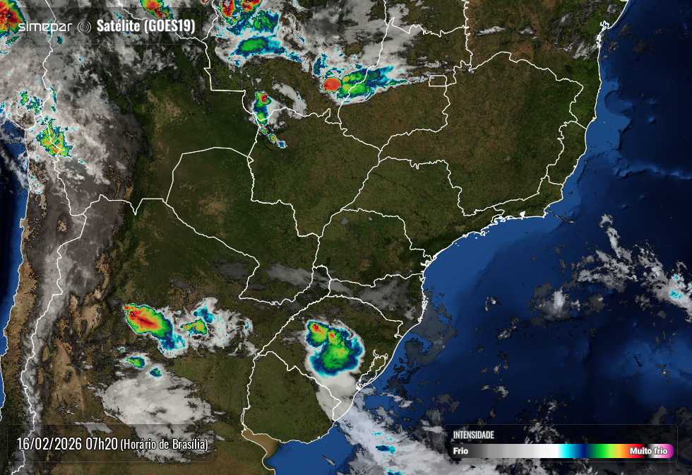 Embora a probabilidade de chuva para esta segunda-feira em Maringá seja nula (0.0 mm), a instabilidade ganha força na terça-feira (17). A permanência do sistema de baixa pressão favorece a formação de áreas de instabilidade, mantendo o risco de pancadas de chuva isoladas e eventuais temporais localizados na região.