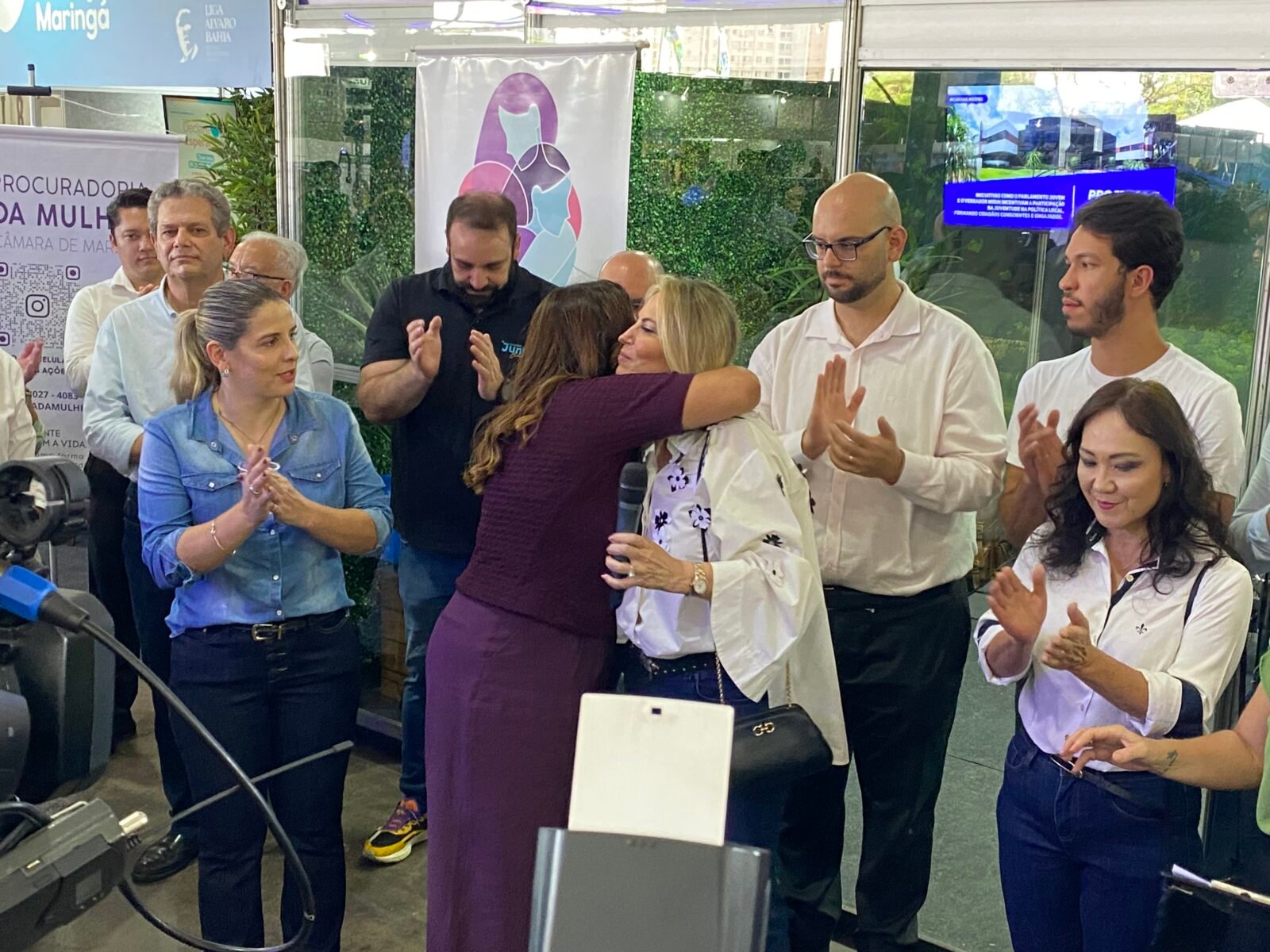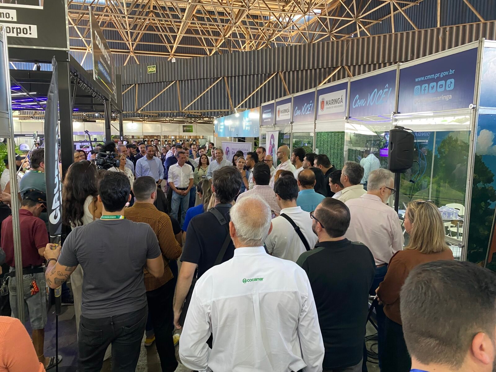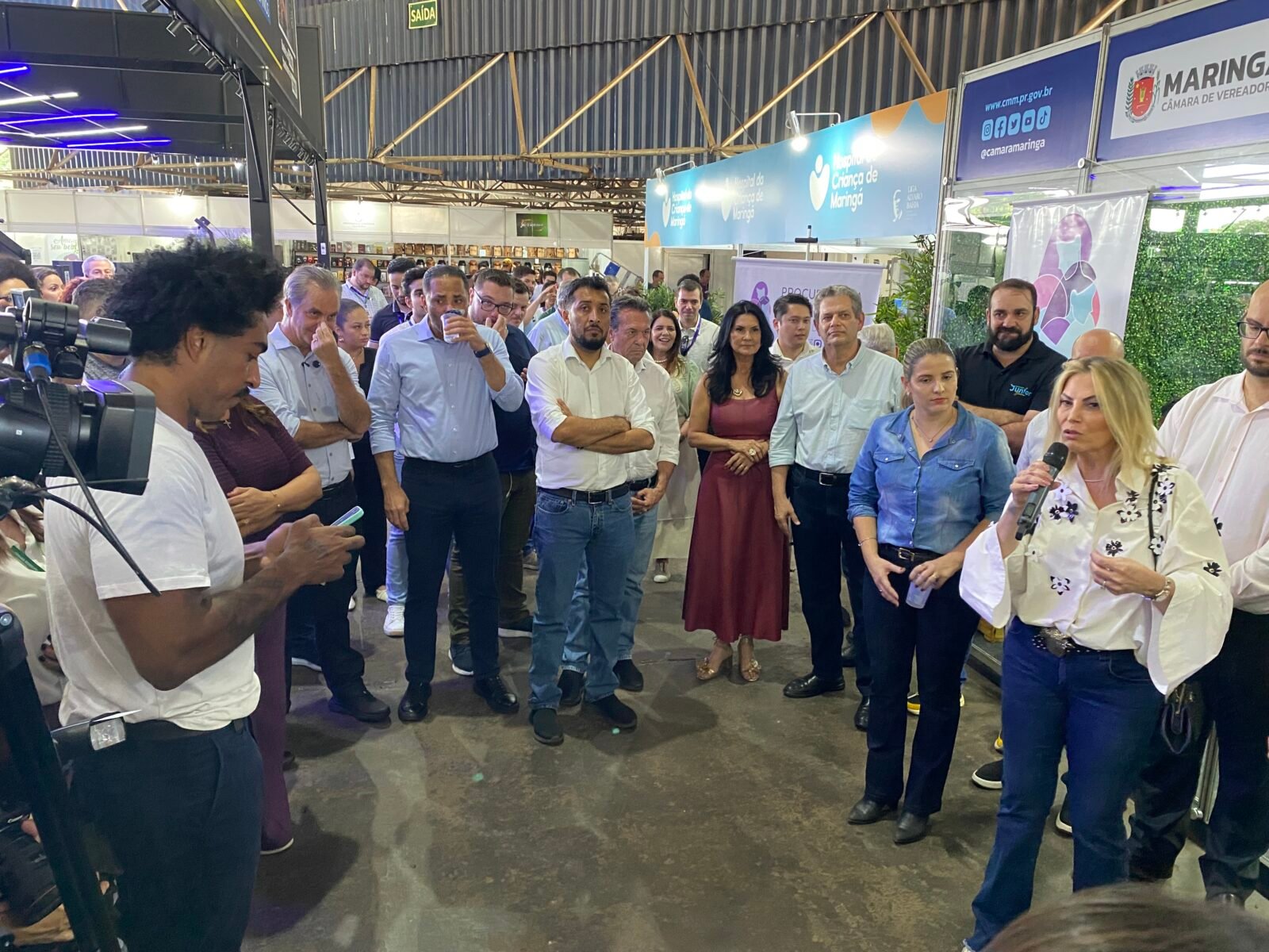 A cerimônia contou com a presença de autoridades municipais e estaduais, incluindo a presidente da Sociedade Rural de Maringá, Maria Iraclézia, e a presidente da Câmara, Majô, além de vereadores, representantes do Executivo e parlamentares estaduais e federais.