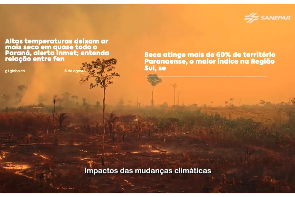 A Companhia de Saneamento do Paraná (Sanepar) lança, a partir desta sexta-feira (1º), uma campanha de conscientização sobre crise climática e uso racional da água, em razão da falta de chuvas, do déficit hídrico e do crescente aumento no consumo. O conceito da campanha é “Então dê uma força pro amanhã. Faça uso consciente da água hoje”.