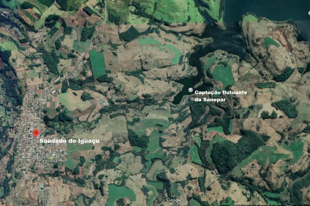 Às margens alagadas do Rio Iguaçu, no município de Saudade do Iguaçu, a Sanepar iniciou a operação de uma estação de captação de água flutuante. Inovadora e sustentável, a estrutura foi planejada e desenvolvida pelos próprios empregados e atenderá com tranquilidade a demanda de consumo da cidade até 2028, quando deve ficar pronta a nova captação de água que está em fase de projeto.