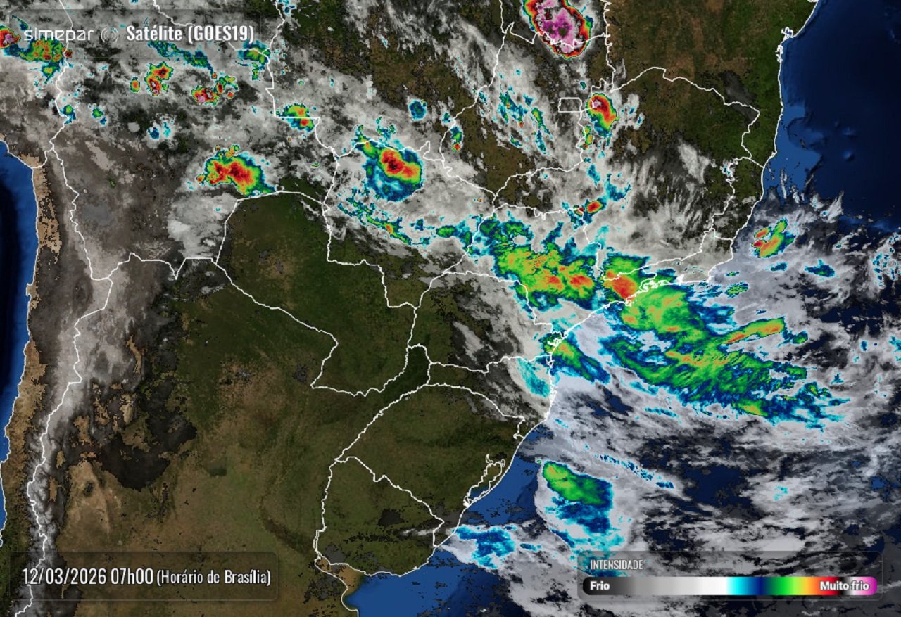 A quinta-feira será marcada por instabilidade climática em todo o Paraná. A presença de um cavado meteorológico — uma região alongada de baixa pressão relativa — sobre o Sul do Brasil favorece a ocorrência de precipitações em todas as regiões do estado em diversos momentos do dia.