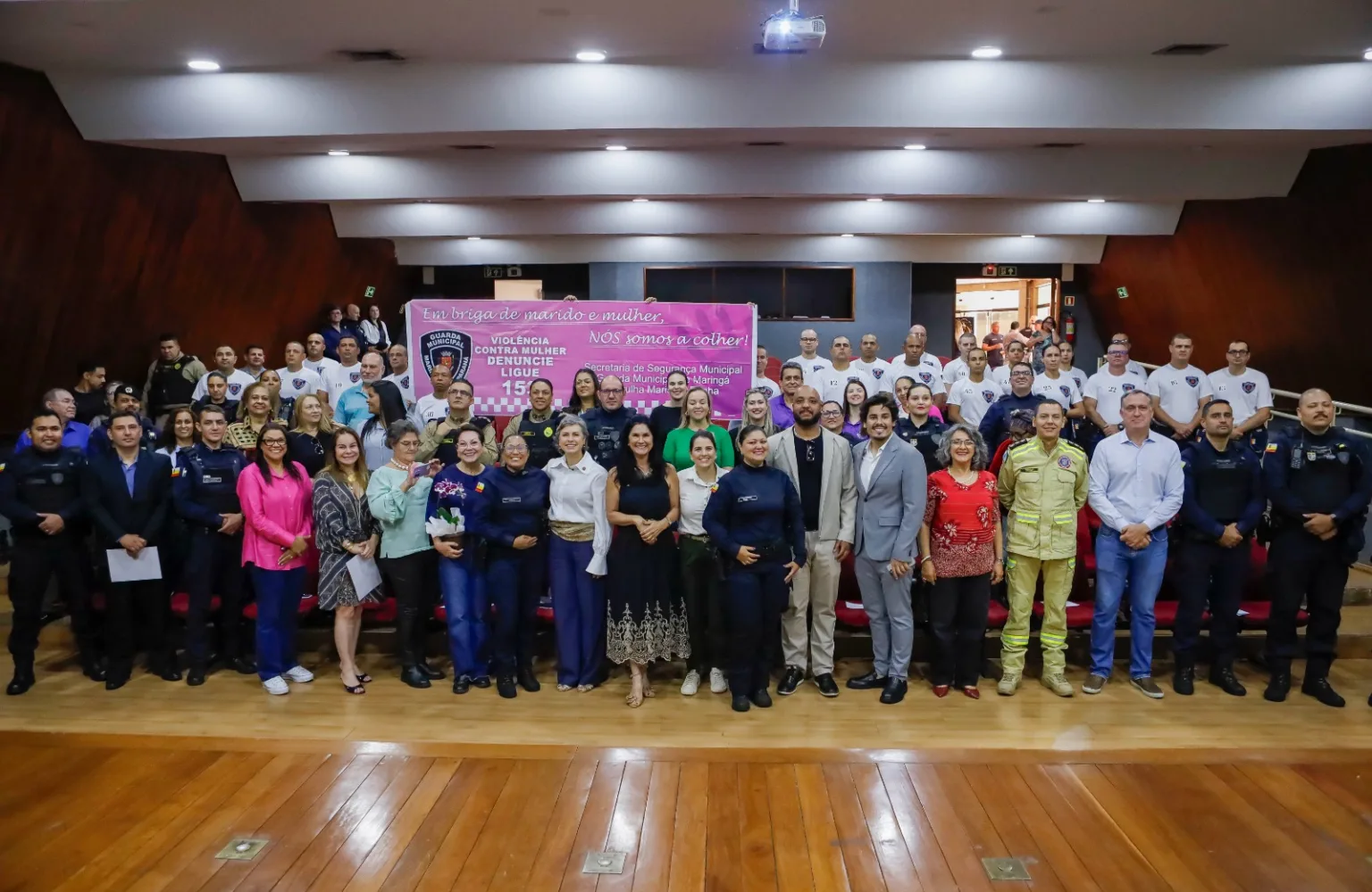 Presenças – Estiveram presentes a comandante da GCM, Irene dos Santos; a primeira-dama de Maringá, Bernadete Barros; os vereadores Ana Lúcia Rodrigues, Luiz Neto e William Gentil; a presidente do Conselho Municipal dos Direitos das Mulheres, Donária Rizzo; a delegada Polyana Vidal Porfírio; a coronel Audilene Rocha, coordenadora do Procon Maringá; major Luiz Nogueira, subcomandante do 4º Batalhão; orientadora Jurídica no Núcleo de Extensão Maria da Penha (NUMAPE/UEM), Adriana Aparicio; Inspetor Operacional da Guarda Civil de Sarandi, Adauto Moura; presidente do Conselho Municipal de Promoção da Igualdade Racial, Gislaine Gonçalves; Presidente ONG Maria do Ingá, Tania Tait; tenente-coronel Andrey Falkiner Fernandes, do 5º Batalhão de Bombeiros Militares; e coronel Rogério Lima De Araújo, do 4º Batalhão de Bombeiros Militares.