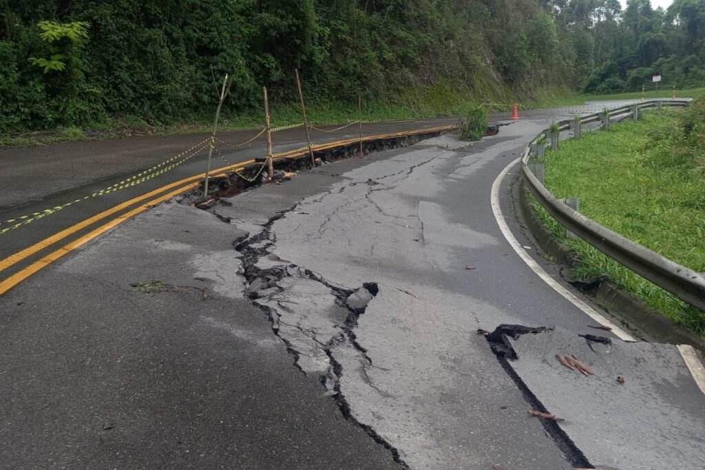 A medida foi necessária após agravamento de rachadura no pavimento, que já havia deixado o trecho em meia pista desde domingo à noite, em decorrência das chuvas. Com a tendência de continuidade das chuvas na região o problema pode se intensificar.