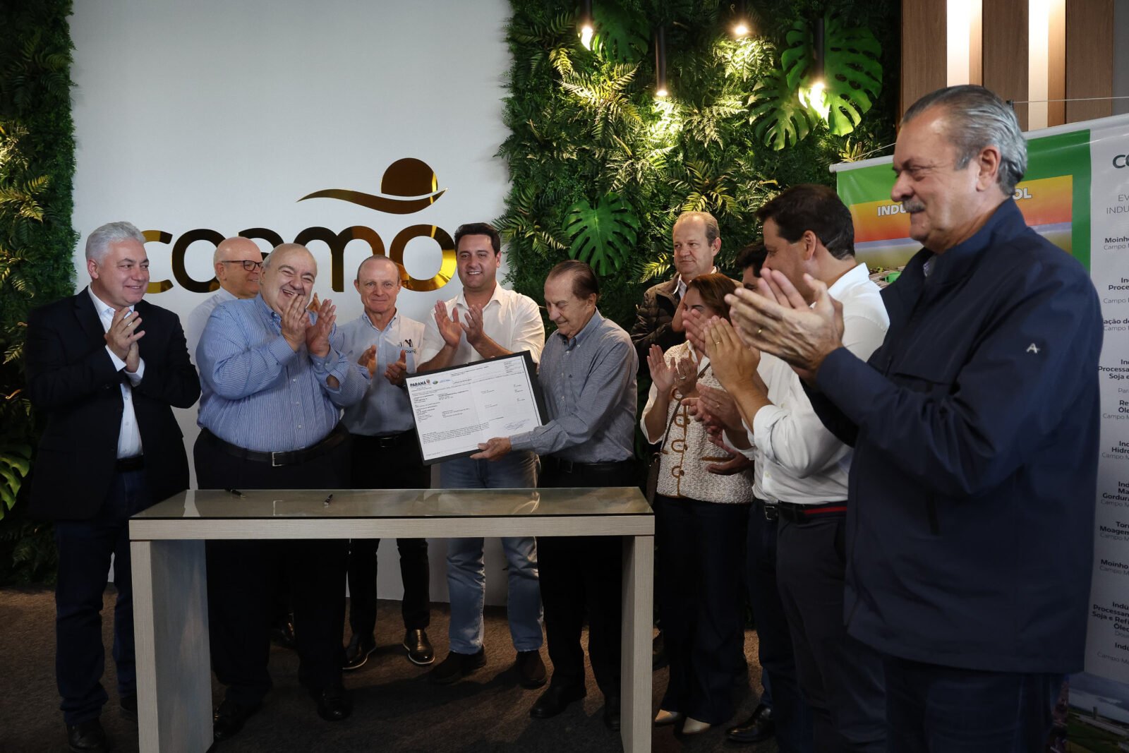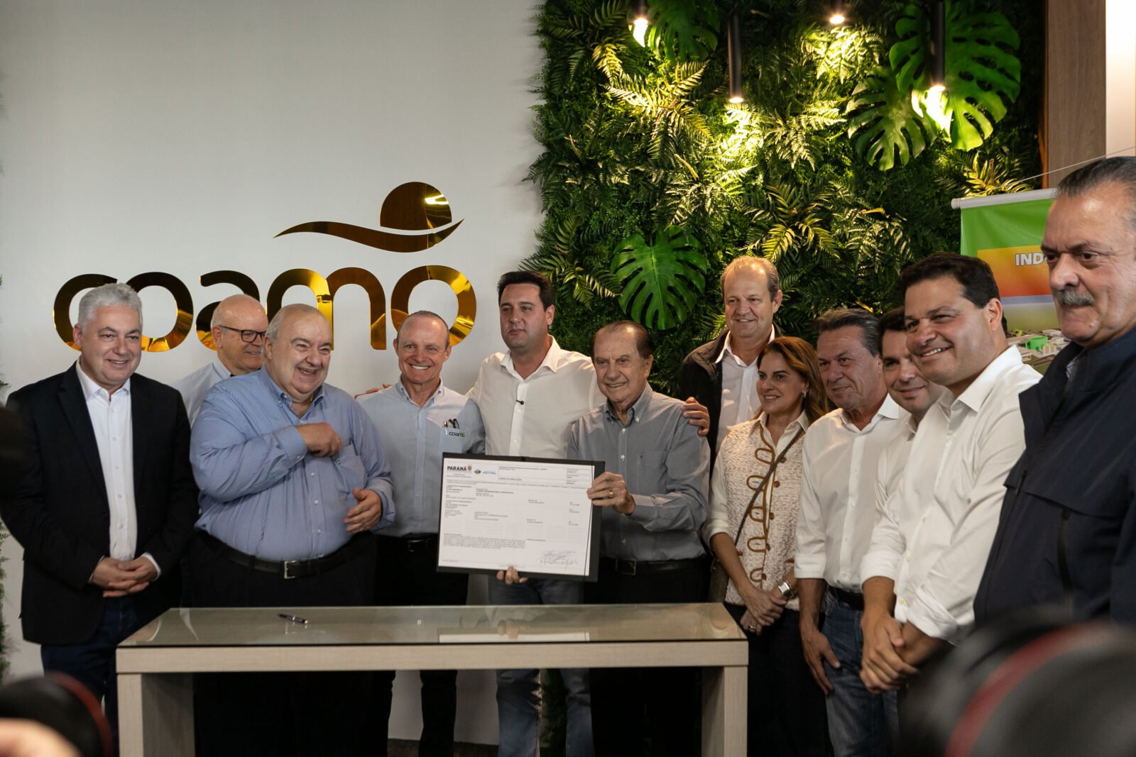 O secretário de Estado da Agricultura e do Abastecimento, Marcio Nunes, enfatizou o pioneirismo do Paraná: “Isso comprova que o Paraná está na vanguarda. A Coamo, a maior cooperativa da América Latina, recebe do Governo do Estado este reconhecimento por Campo Mourão e região, com a entrega da licença. Estamos mostrando que é possível crescer, desenvolver, gerar emprego e renda, melhorar a vida das pessoas, cuidando e recuperando o meio ambiente”.