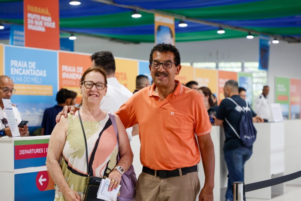 CRUZEIRO NO PARANÁ – A possibilidade de embarcar em Paranaguá para cruzeiros internacionais tem atraído turistas de todo o Paraná para a região. O casal Neiva e Ademir Souza, de União da Vitória, aproveitou a proximidade para fazer sua primeira viagem de cruzeiro. “É mais em conta e mais rápido. Antigamente, se você quisesse fazer uma viagem destas, teria que ir até Santa Catarina ou São Paulo. A expectativa está muito alta, mas já queremos voltar para mais viagens”, disse Neiva.