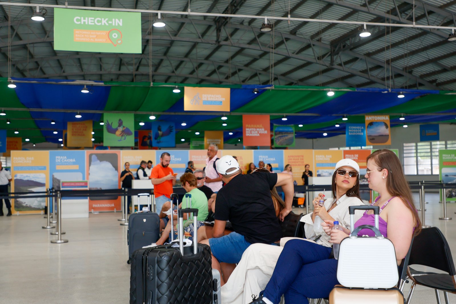 EMBARQUES – Os passageiros realizam os embarques através do Complexo Mega Rocio, que passou por uma revitalização para oferecer mais conforto aos turistas. Após os procedimentos de check-in, o navio segue viagem em direção a Santa Catarina.