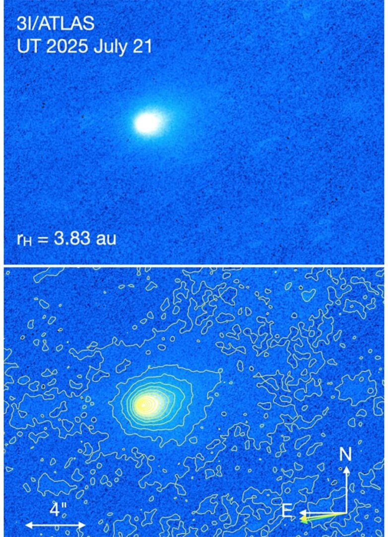 No entanto, no caso do 3I/ATLAS, os astrônomos detectaram um fenômeno que pode ir além da simples ilusão. Observações a 3,8 unidades astronômicas do Sol (cerca de 570 milhões de km) mostraram uma coma alongada que realmente aponta na direção solar. O cometa está essencialmente ligando um “farol” que ilumina sua trajetória.