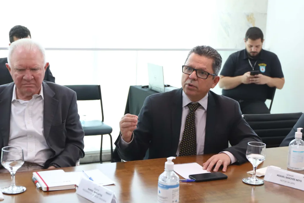 O governador Carlos Massa Ratinho Junior participa nesta segunda-feira (19) de reuniao com C-DAC Centre for Development of Advanced Computing – com sede na Índia. Na foto reitor da UEPG, Miguel Sanches Neto.