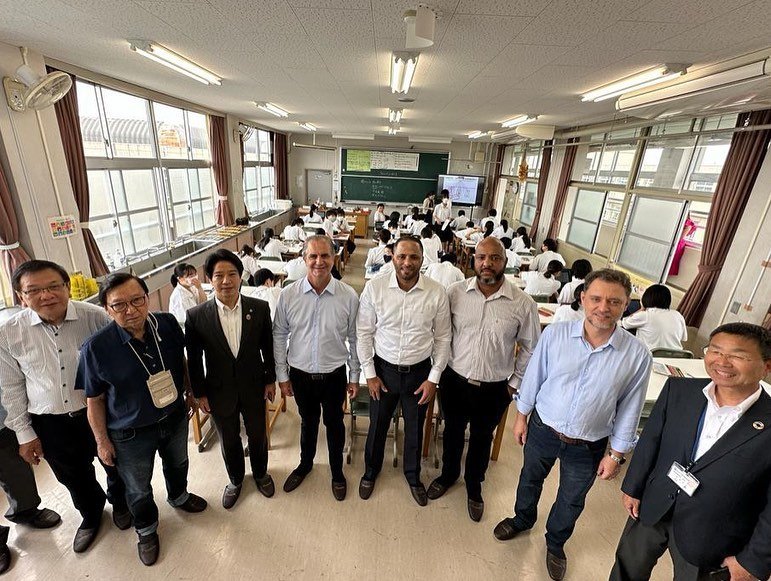 A comitiva visitou a Escola Municipal GIGA Scholl e teve a oportunidade de conhecer o ensino integral oferecido pela educação japonesa que é referência internacional.