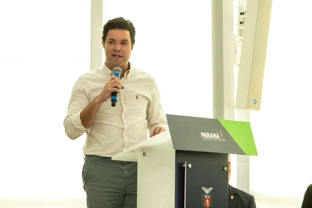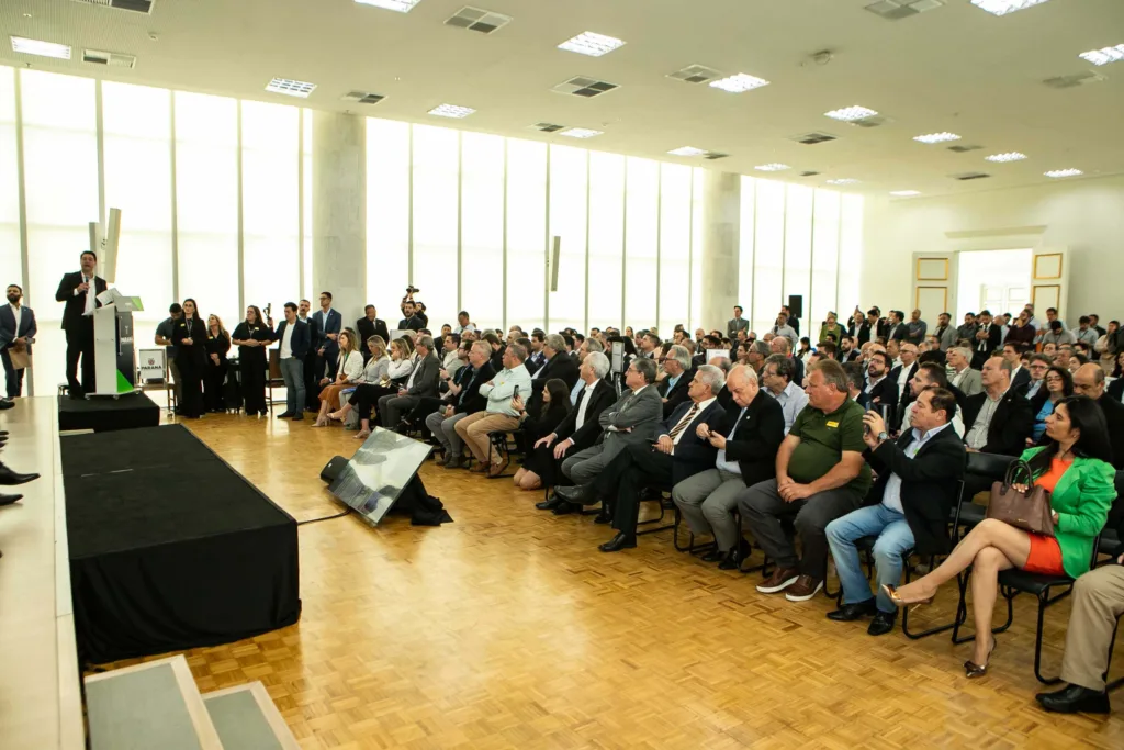 PRESENÇAS – Participaram da solenidade os secretários estaduais do Planejamento, Guto Silva; da Fazenda, Norberto Ortigara; do Desenvolvimento Sustentável, Everton Souza; da Inovação, Modernização e Transformação Digital, Alex Canziani; e da Indústria, Comércio e Serviços, Ricardo Barros; os presidentes da Sanepar, Wilson Bley; da Invest Paraná, Eduardo Bekin; e do Instituto Água e Terra (IAT), José Luiz Scroccaro; a deputada federal Luísa Canziani; e os deputados estaduais Hussein Bakri, Luís Corti, Anibelli Neto, Do Carmo, Flávia Francischini, Maria Victória, Alexandre Amaro, Pedro Paulo Bazana e Tiago Amaral; o secretário-executivo do Codesul, Orlando Pessuti; e a ex-governadora Cida Borghetti.