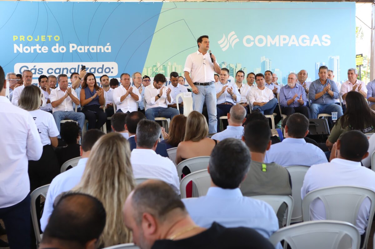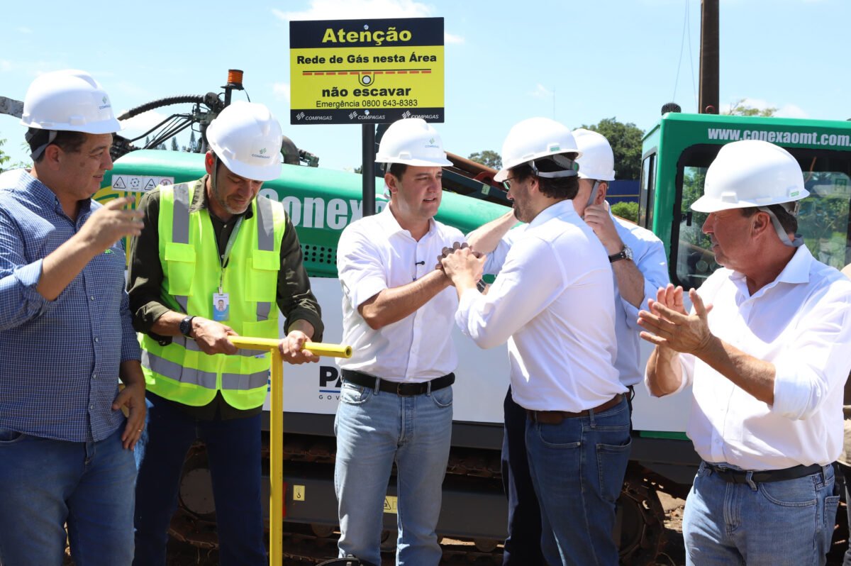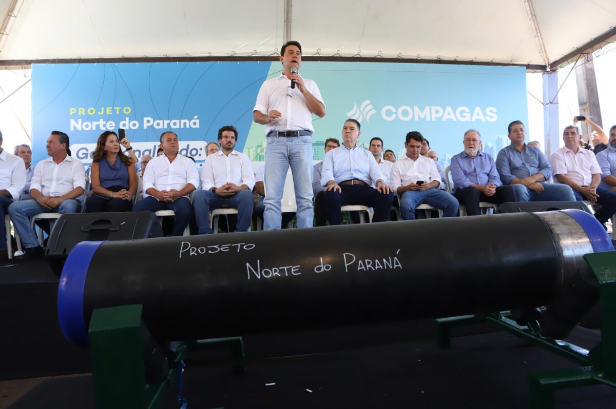 O governador Carlos Massa Ratinho Junior participou nesta quinta-feira (20) da entrega da primeira fase de expansão da rede de gás canalizado da Compagas em Londrina, no Norte do Estado. Foram instalados 4 quilômetros de dutos entre a cidade e o município de Cambé, também na região Norte.
