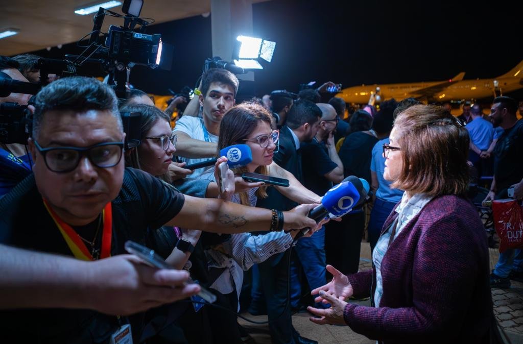 A ministra substituta das Relações Exteriores, Maria Laura da Rocha, disse hoje que o objetivo do governo é “trazer todos de volta”. Ela, o ministro da Defesa, José Múcio, e o comandante da Aeronáutica, Marcelo Damasceno, receberam os repatriados na Base Aérea de Brasília.