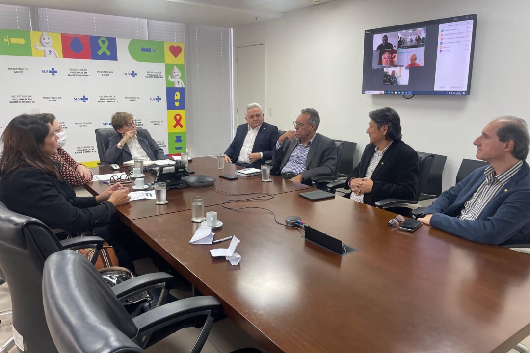 O encontro sobre vigilância em saúde contou com a presença de representantes do Conselho Nacional de Secretários de Saúde (Conass), da secretária de Vigilância em Saúde e Ambiente do Ministério da Saúde, Mariângela Galvão, do secretário adjunto, Fabiano Martins, e da coordenadora de Emergência em Saúde Pública da Secretaria de Saúde do Mato Grosso do Sul, Karine Barbosa.