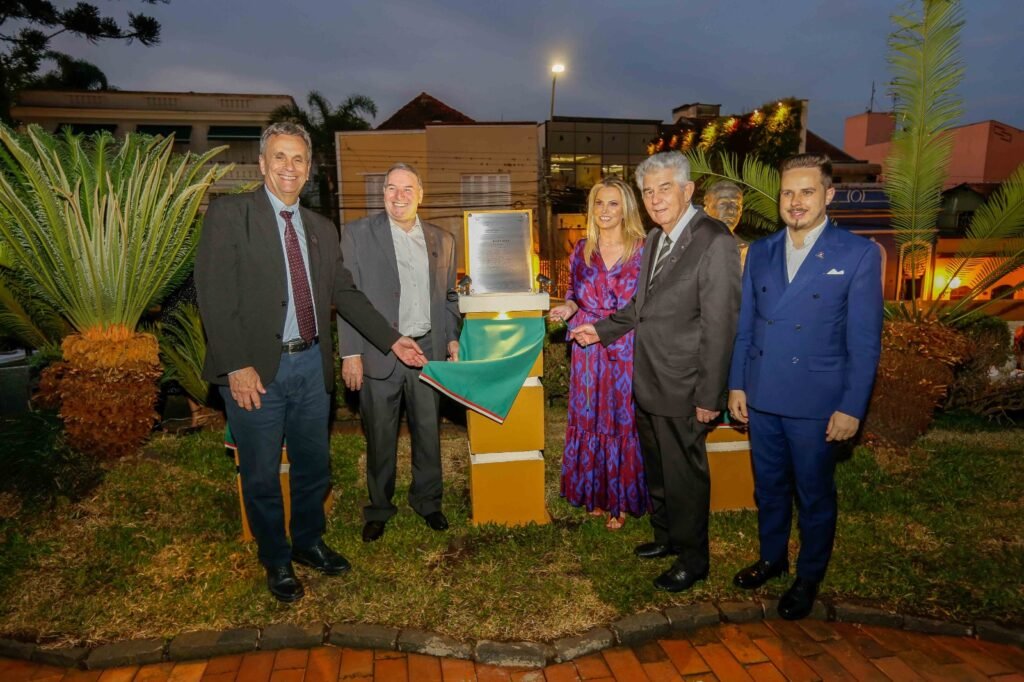 HOMENAGENS – Além da inauguração da escultura somam-se aos bustos já expostos no jardim do Palácio Garibaldi três novos monumentos em homenagem aos ex-presidentes da Associação, Giovanni Corghi e Wladimir Trombini, e ao ex-governador Ney Braga.
