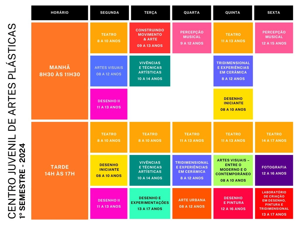 O Centro Juvenil de Artes Plásticas (CJAP), instituição dedicada à formação artística de crianças e jovens no Paraná, está com inscrições abertas para o 1º semestre de 2024. As matrículas estarão abertas a partir da segunda-feira (19) e se encerram no dia 1º de março. As aulas iniciam na semana de 04 de março e vão até a semana de 28 de junho de 2024.