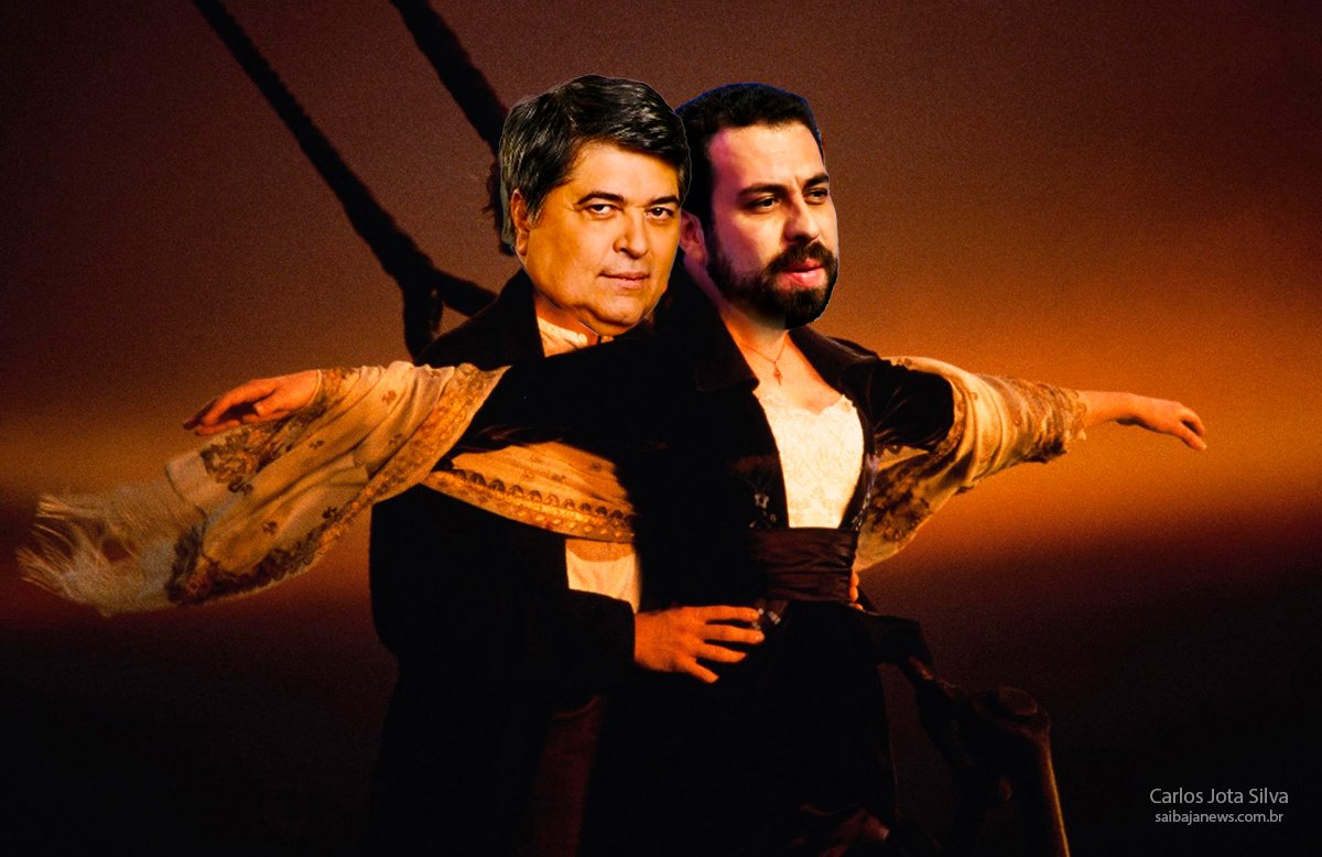 Guilher Boulos e o apresentador José Luiz Datena no Titanic 9Prefeitura de São Paulo). Ilustração feita por Jota Silva.