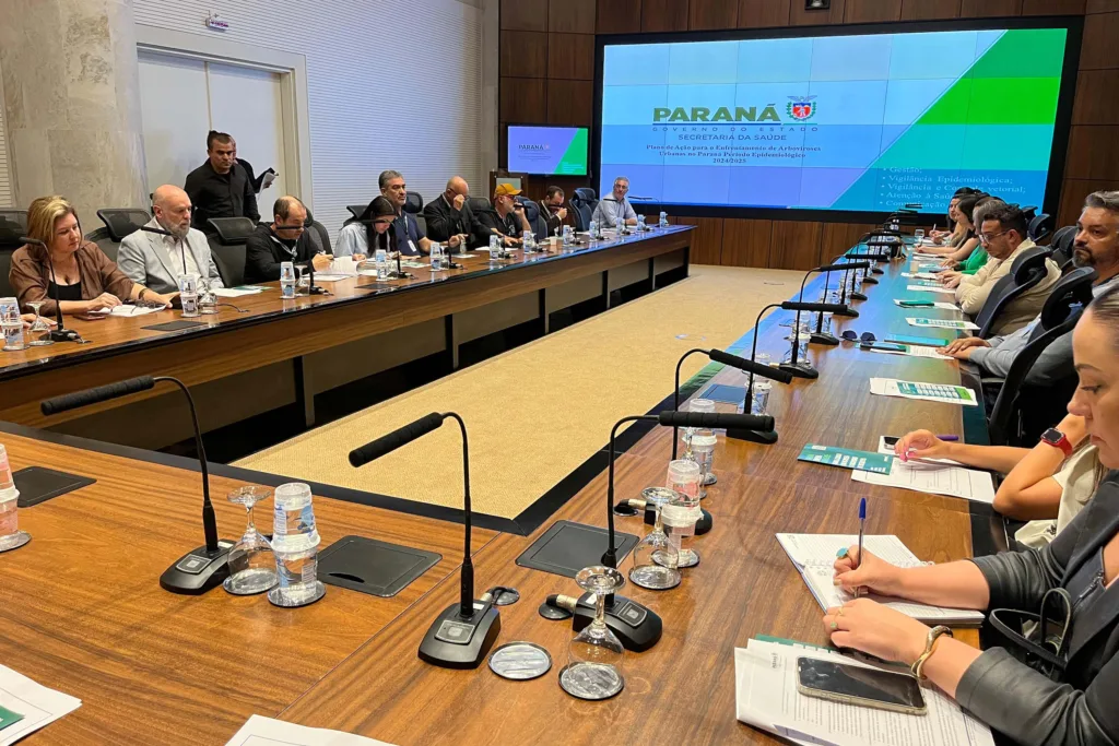 Com o objetivo de fortalecer o combate à dengue e implementar medidas para intensificar a luta contra os vetores das arboviroses, em especial o mosquito Aedes aegypti, a Secretaria de Estado da Saúde (Sesa) realizou nesta sexta-feira (22), em Curitiba, a primeira reunião do Comitê Intersetorial de Controle da Dengue do período epidemiológico 2024/2025. O comitê reúne representantes de 13 secretarias, autarquias e órgãos estaduais, além de 32 instituições parceiras.
