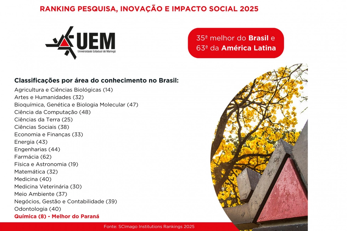 “Nossa posição reflete o compromisso com inovação, infraestrutura qualificada e parcerias multidisciplinares que geram impacto social, pois contamos com docentes reconhecidos, laboratórios modernos e colaborações com o setor produtivo que fortalecem a produção de conhecimento e atraem talentos, consolidando a UEM como referência em ciência e tecnologia”, destaca.