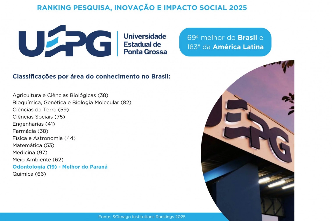 A Universidade Estadual de Ponta Grossa (UEPG) é a melhor do Paraná em odontologia, classificada na 19ª colocação entre as brasileiras. Já as universidades estaduais do Oeste do Paraná (Unioeste) e do Centro-Oeste (Unicentro) alcançaram melhores resultados em agricultura e ciências biológicas; artes e humanidades; ciências da terra; ciências farmacêuticas; ciências sociais; economia e finanças; energia; medicina veterinária; e química.