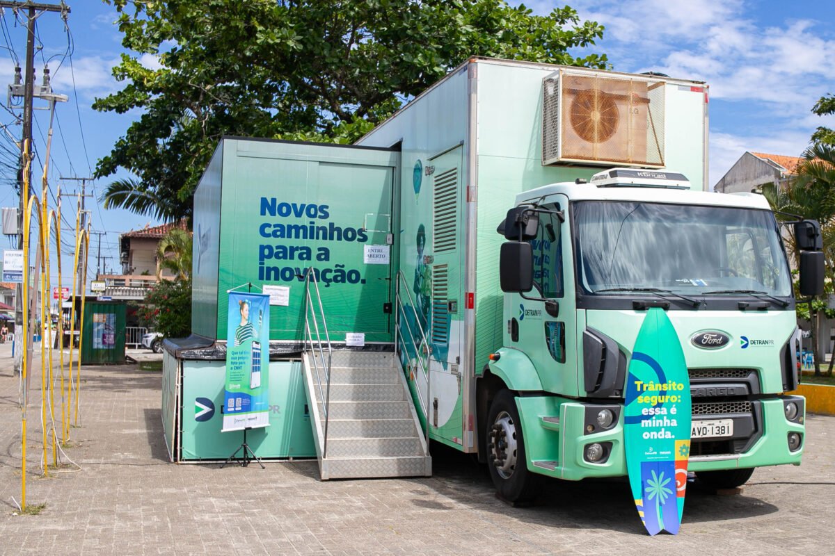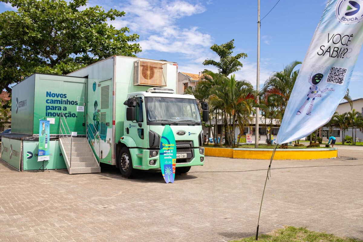 DETRAN NO LITORAL – O Detran Móvel está no Litoral durante o Verão Maior Paraná. Trata-se de um veículo equipado para oferecer serviços do Detran-PR, como consultas, agendamentos de serviços, renovação de CNH, orientações sobre documentação, emissão do CRLV-e e da credencial para estacionamento para idosos, entre outros.