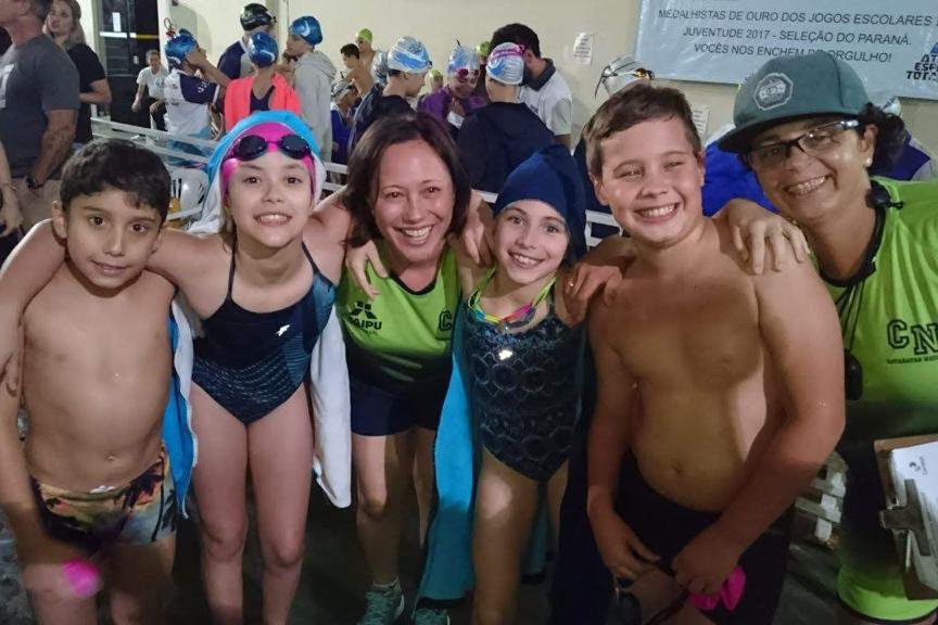 “Quando a Duda era pequena, eu treinava a equipe master, e sempre a levava para os campeonato. Não faltava gente para cuidar e dar colo, ela dormia ao som dos gritos de torcida e adorava viajar. Meu marido também nadava nesses campeonatos, então sempre estávamos juntos. Éramos uma família completa competindo Brasil afora”, diz.