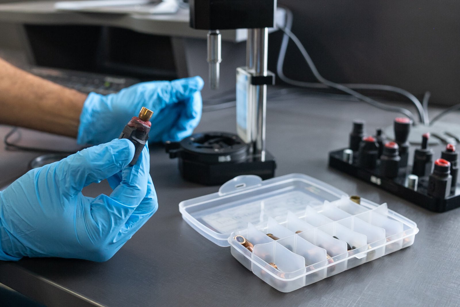 O trabalho de comparação em busca de um match, porém, começa muito antes do material chegar ao laboratório. É durante a ocorrência, na cena do crime, que o perito faz a coleta e, posteriormente, a triagem dos vestígios balísticos. Esses materiais, que são registrados e custodiados, são encaminhados para o laboratório, onde são processados de acordo com a sua natureza.