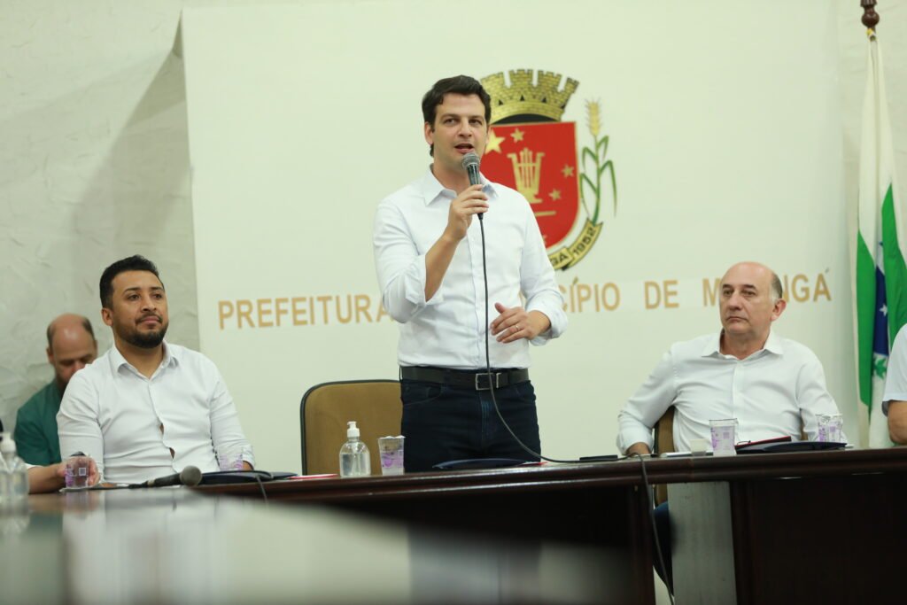 Presenças – Também participaram da reunião,os deputados estaduais Evandro Araújo e Soldado Adriano José; o chefe de Gabinete, Domingos Trevizan; secretários municipais; o secretário de Estado da Indústria e Comércio, Ricardo Barros; o superintende de Apoio aos Municípios, Ricardo Maia; o reitor da Universidade Estadual de Maringá (UEM), Leandro Vanali; o vice-prefeito de Sarandi, Wlademir Garbúggio; capitão da Polícia Ambiental Alcimar Crecêncio e outras autoridades e representantes da sociedade civil.