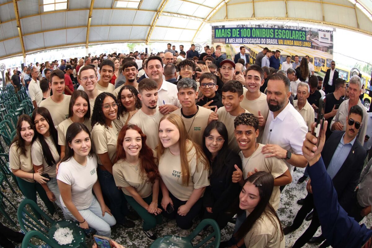 “Para nós é um motivo de muita alegria poder fazer mais essa entrega, que na verdade é um pacote. Começamos na semana passada com os kit escolares e agora o primeiro lote de ônibus que vamos entregar ao longo dos próximos meses”, comentou o governador Ratinho Junior. “São os primeiros 113 ônibus novos, adaptados, com acessibilidade. Tudo para oferecer mais segurança e segurança para o aluno no trajeto de casa para a escola e vice-versa”.
