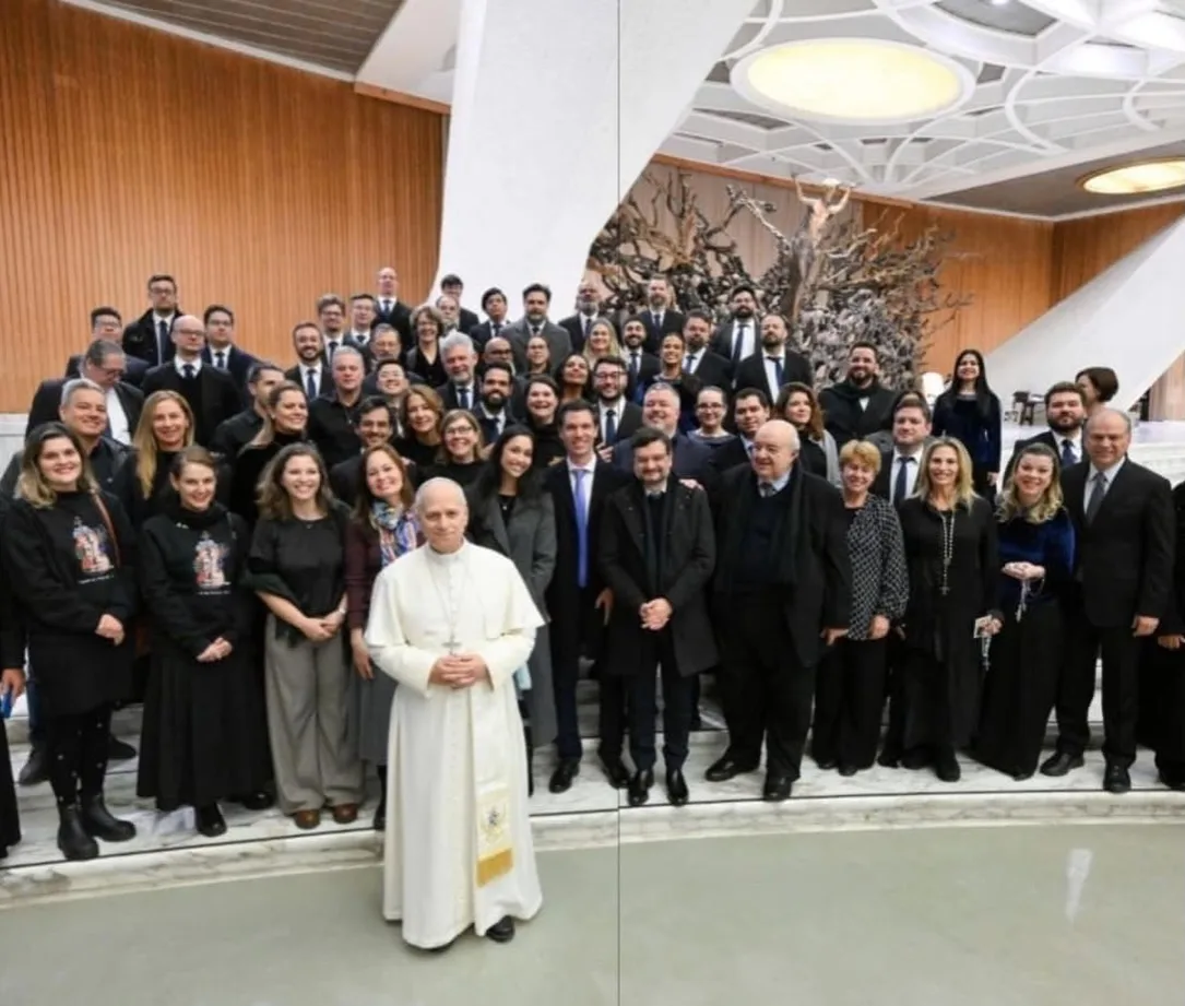 Um dos momentos mais emocionantes da celebração foi a apresentação da Camerata Antiqua de Curitiba. Sob a regência de músicos paranaenses, o Hino Nacional Brasileiro ecoou em solo sagrado, sendo assistido de perto pela Vossa Santidade e pelas autoridades presentes.