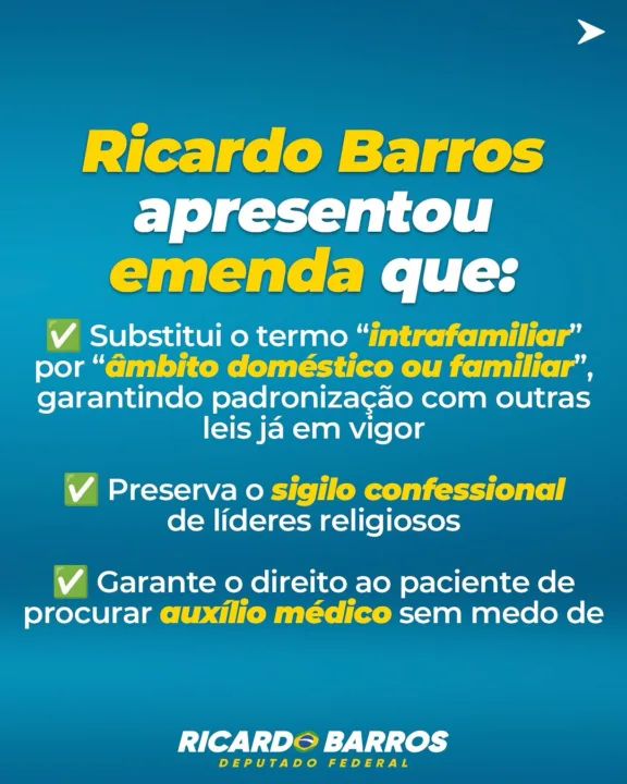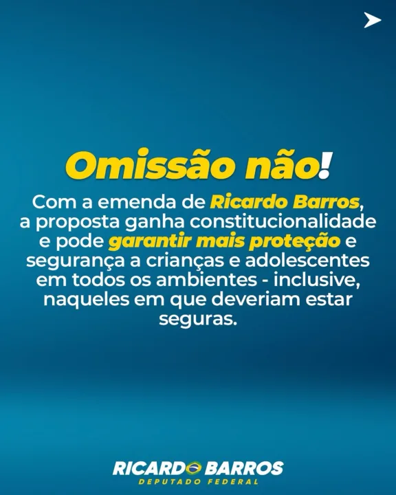“A omissão de comunicação desses crimes não pode ser tolerada. Minha emenda visa responsabilizar quem tem o dever de proteger e falha, garantindo mais segurança jurídica para a sociedade e mais proteção imediata às vítimas.” Afirmou Ricardo Barros.