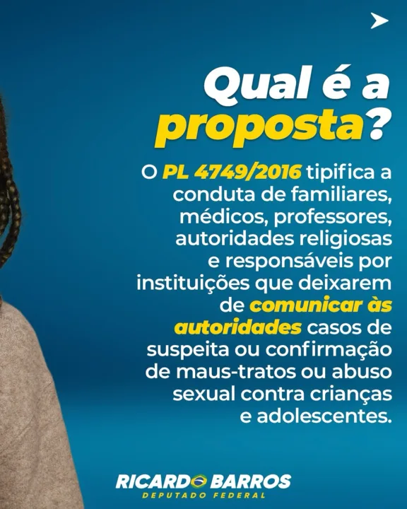 O PL 4749/2016, de autoria da Comissão Parlamentar de Inquérito (CPI) do Senado Federal que investigou a violência contra jovens e crianças no Brasil, busca endurecer as punições para crimes sexuais contra menores. A proposta de Ricardo Barros se insere neste contexto como um reforço crucial na prevenção e notificação, garantindo que a omissão não seja uma rota de fuga para quem tem o dever de agir. A emenda reforça a ideia de que a responsabilidade pela proteção é coletiva, mas legalmente exigível de quem está em posição de poder ou confiança.