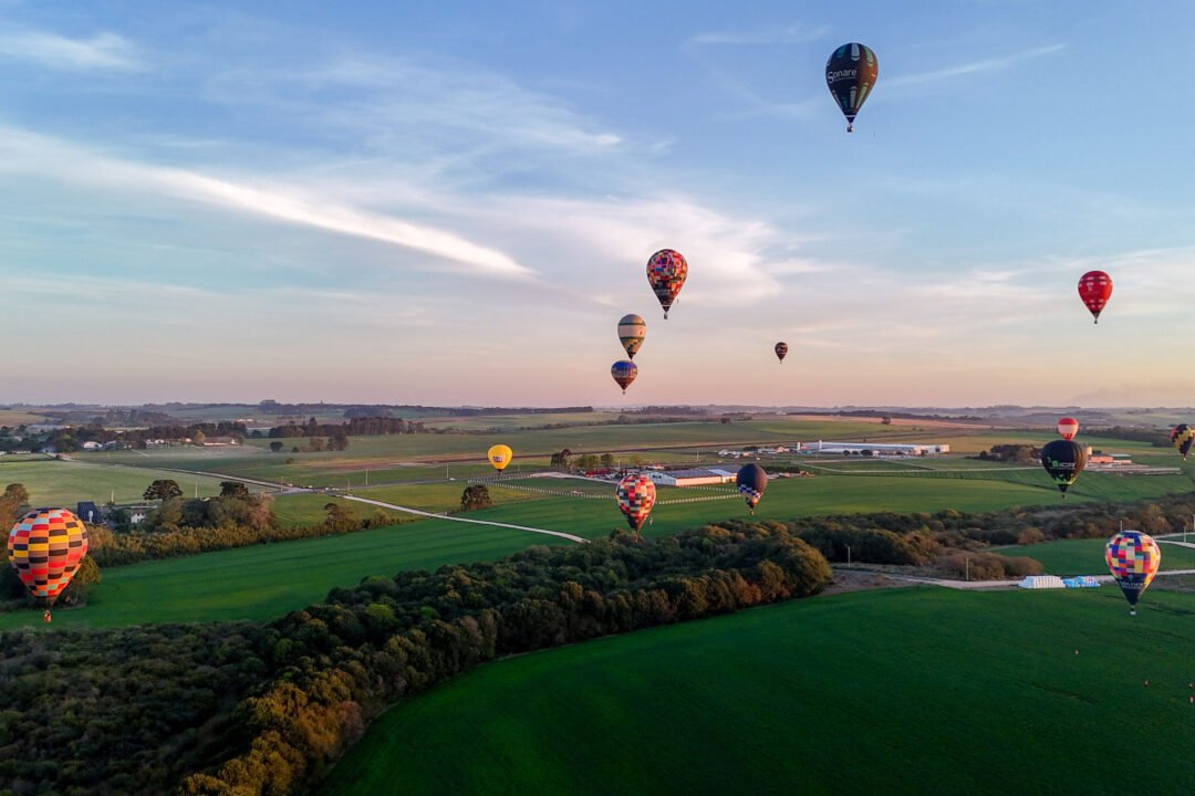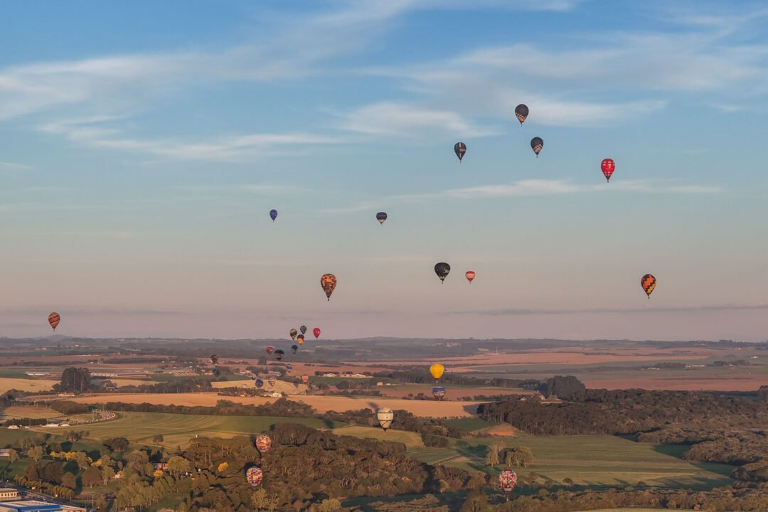 O Festival da Primavera, que começou na sexta-feira (12) com uma decolagem coletiva, seguiu com uma programação diversificada, incluindo gastronomia, exposições e as finais da Copa Paranaense de Balonismo.
