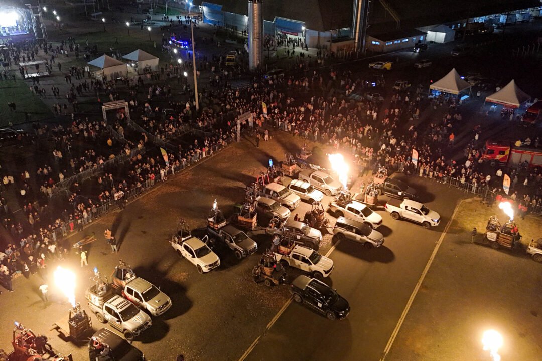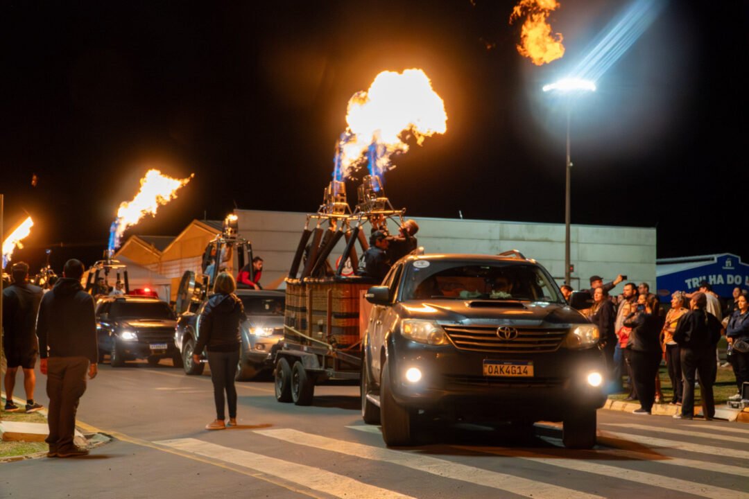 Um show de luzes e chamas, algo raro de se ver no Brasil, foi o ponto alto do Festival de Primavera em Castro, nos Campos Gerais. No último sábado (13), o Castrolanda Expo Center foi palco de uma carreata e um espetáculo noturno onde quase 50 maçaricos de balões, sincronizados com música, criaram um show visual impressionante.