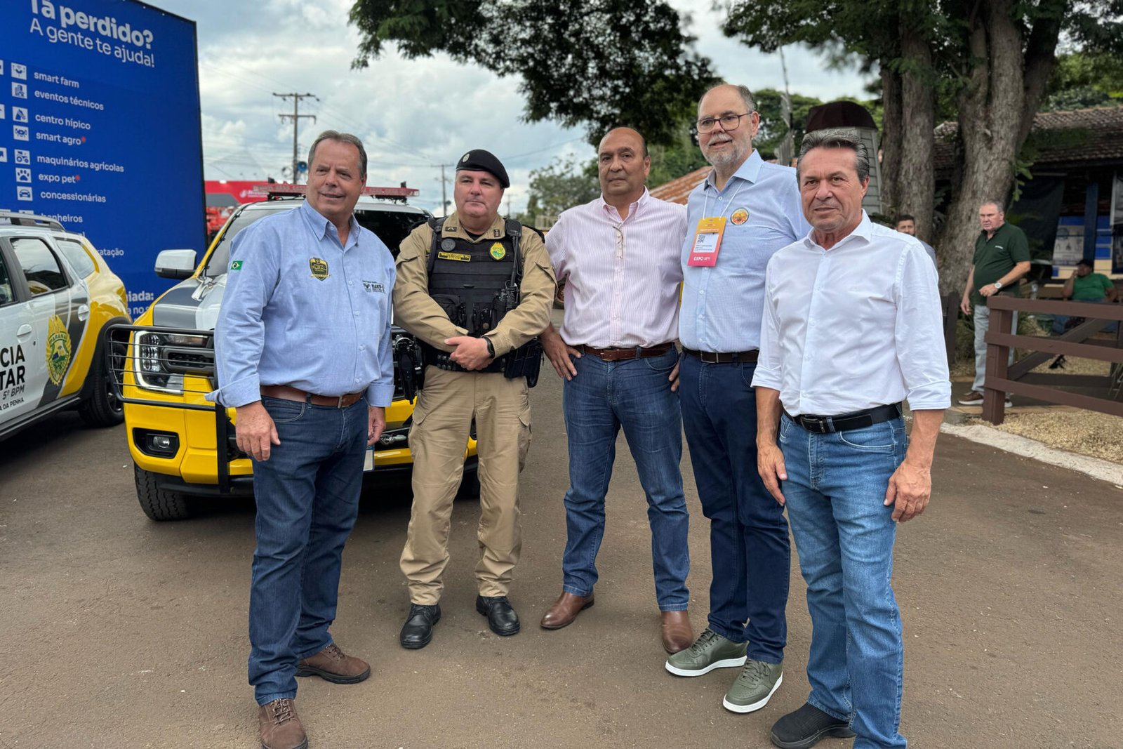 Na ExpoLondrina, o Governo do Estado iniciou testes de conexão de internet via satélite na Patrulha Rural da Polícia Militar do Paraná. A ação integra o programa de Conectividade Rural, coordenado pela Secretaria da Inovação e Inteligência Artificial (SEIA).