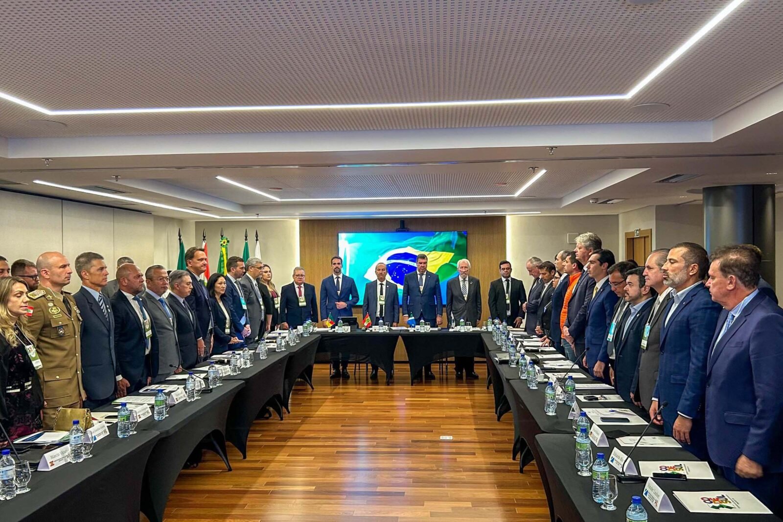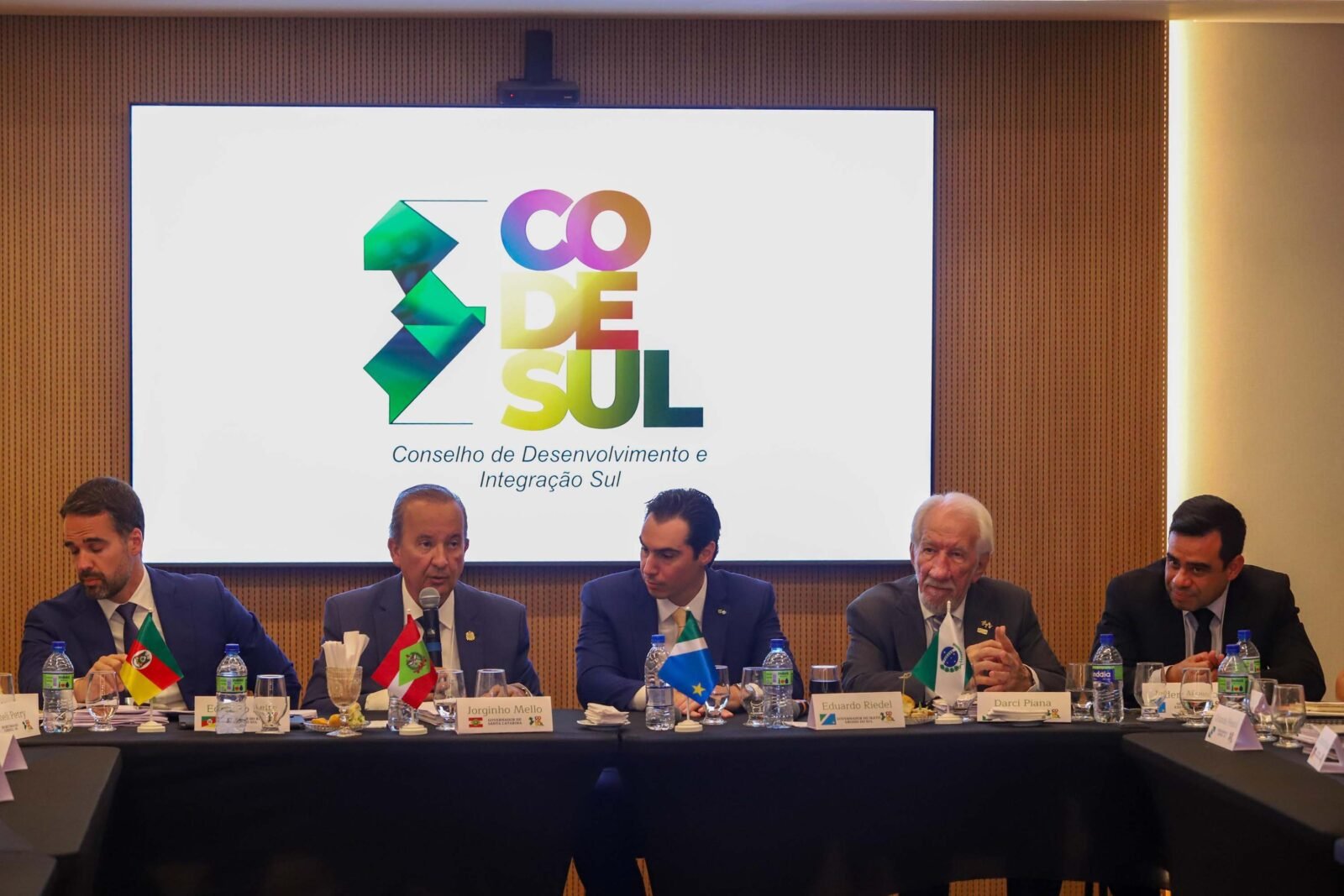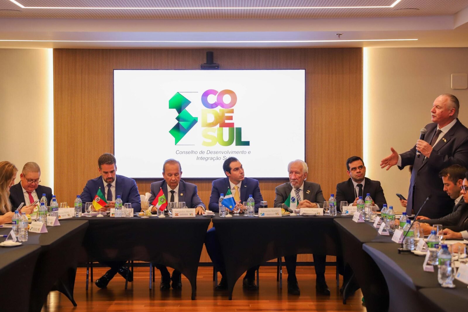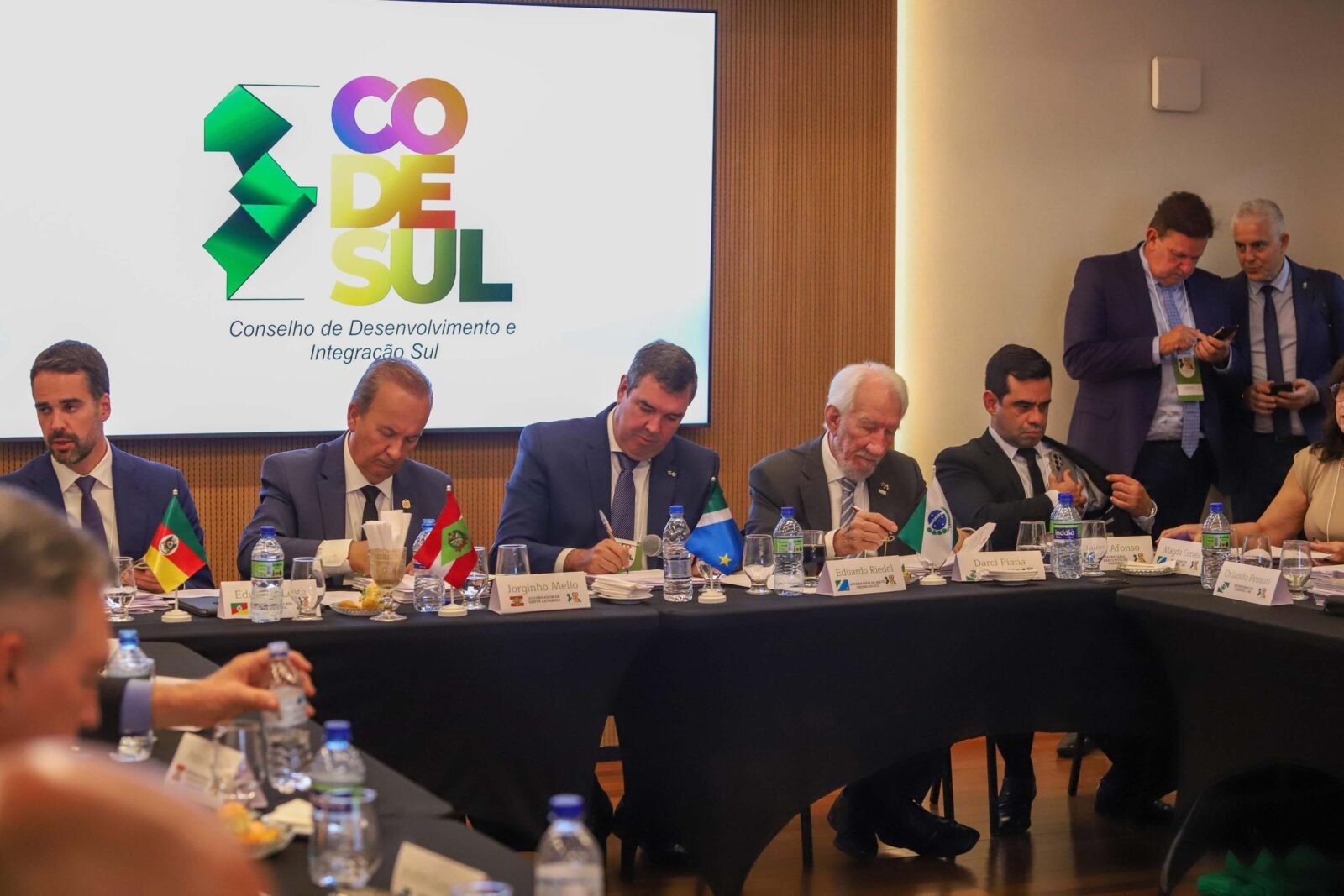 Também participaram do encontro os governadores Eduardo Leite, do Rio Grande do Sul; Jorginho Melo, de Santa Catarina; e Eduardo Riedel, do Mato Grosso do Sul, além de secretários estaduais e demais autoridades.