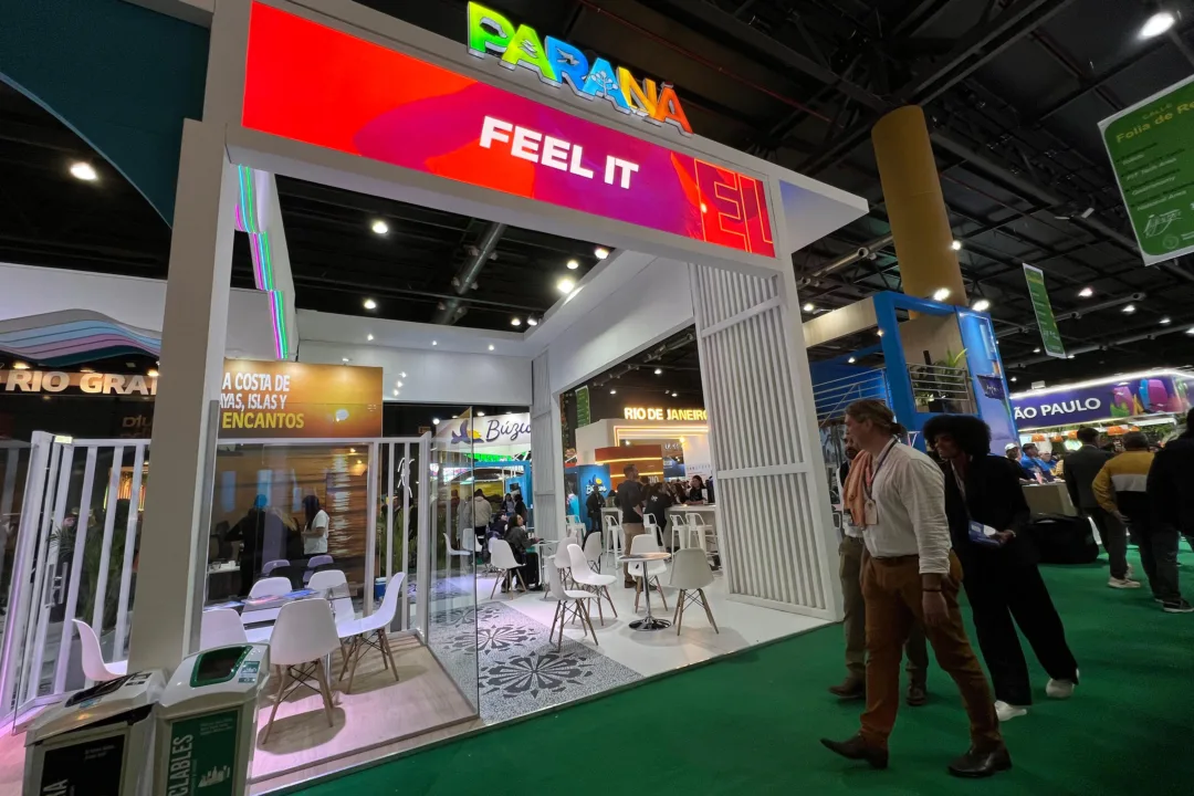 OPORTUNIDADE NO EXTERIOR – Ao todo, 18 coexpositores participam do estande do Viaje Paraná na feira, entre agências de viagens, meios de hospedagens e representantes de prefeituras, selecionados por meio de Manifestação de Interesse.