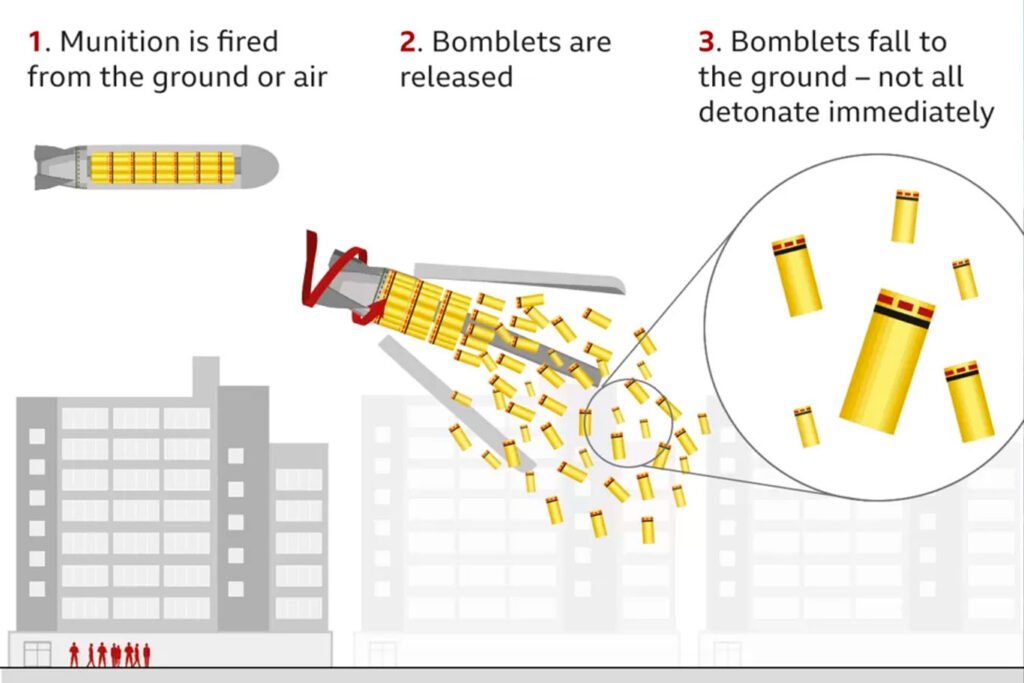 Grupos de direitos humanos descreveram as munições cluster como “abomináveis” e até mesmo um crime de guerra.
