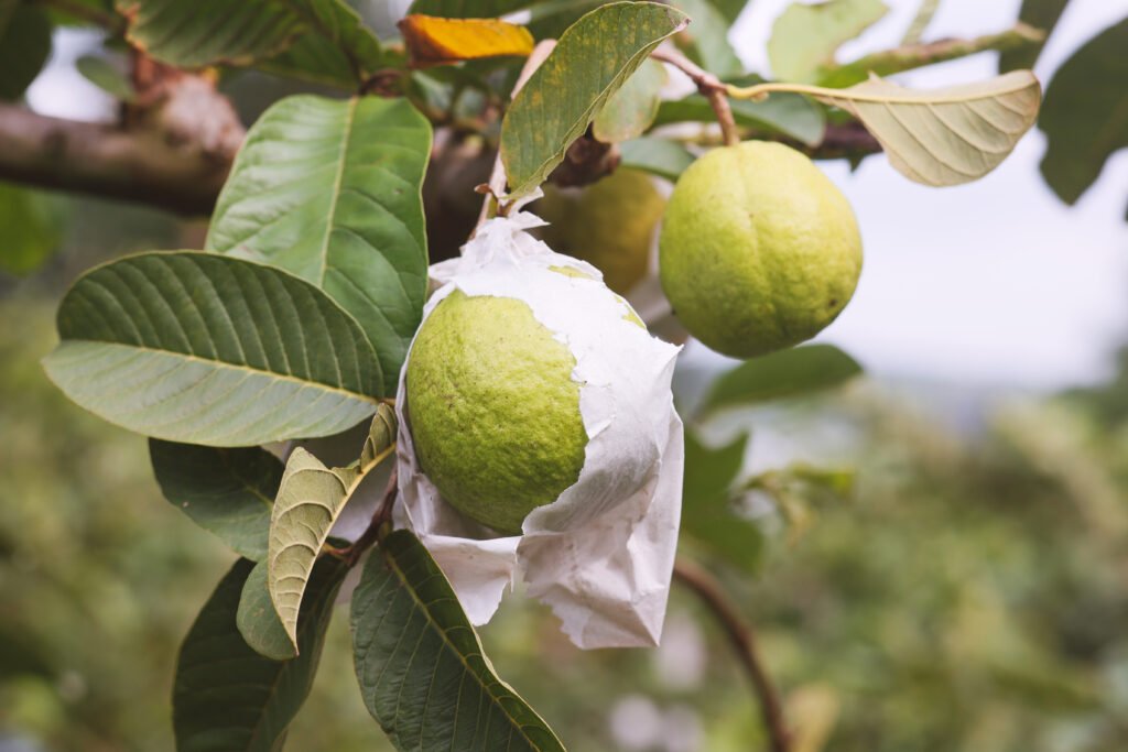 Circular por uma plantação de goiabas em Carlópolis, no Norte Pioneiro do Paraná, pode ser uma experiência inusitada: milhares de mudas divididas em talhões de diferentes tamanhos, com todas as frutas ensacadas, uma a uma, ainda no pé. Este é o retrato das técnicas que fazem com que os produtores da cidade consigam colher, ao longo do ano todo e sem abuso de insumos agrícolas, goiabas mais doces, resistentes e maiores.