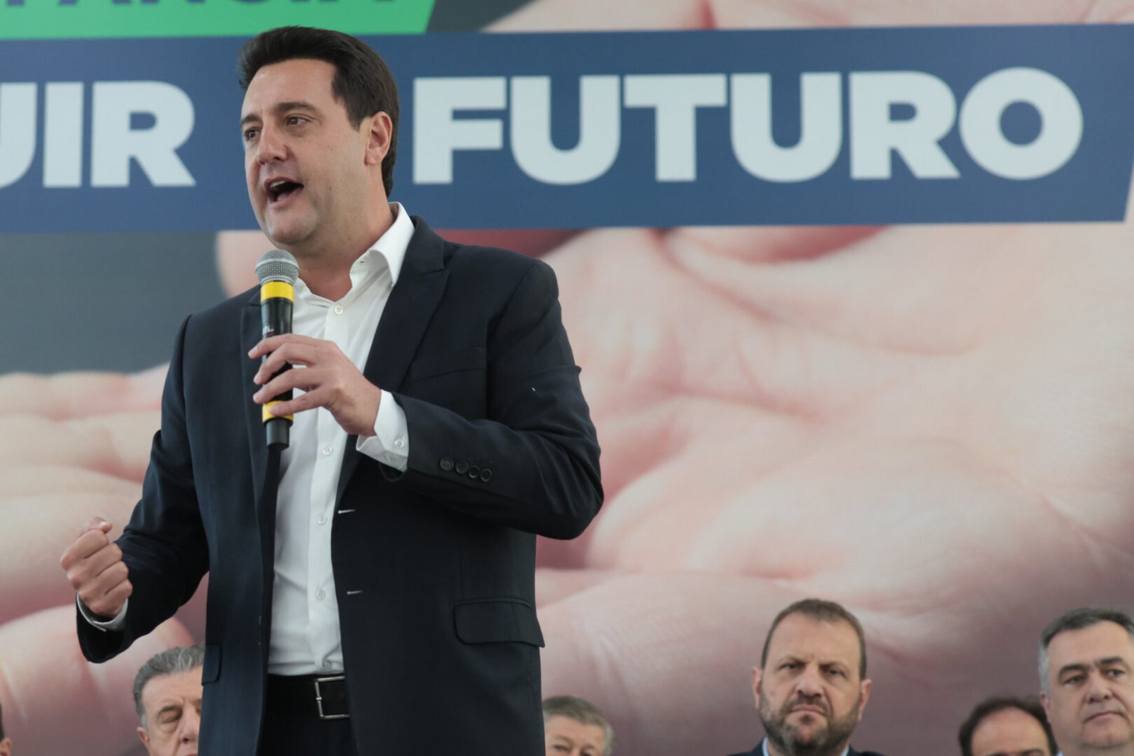 PRESENÇAS – Participaram do evento os secretários estaduais João Carlos Ortega (Casa Civil), Beto Preto (Saúde), Do Carmo (Trabalho, Qualificação e Renda), Marco Brasil (Indústria, Comércio e Serviços) e Ulisses Maia (Planejamento); o secretário do Codesul pelo Paraná, Orlando Pessuti; o superintendente de Relações Institucionais, Renato Adur; o líder do Governo na Alep, Hussein Bakri, o presidente da Alep, Alexandre Curi, os deputados estaduais Adão Litro, Ademar Traiano, Alexandre Amaro, Anibelli Neto, Artagão Júnior, Batatinha, Cantora Mara Lima, Denian Couto, Dr. Leônidas, Gilberto Ribeiro, Gilson de Souza, Luiz Cláudio Romanelli, Mabel Canto, Márcia Huçulak, Maria Victoria, Marcio Pacheco, Moacir Fadel, Nelson Justus, Pedro Paulo Bazana, Ricardo Arruda e Tercílio Turini; o presidente da Associação dos Municípios do Paraná, Edimar Santos; prefeitos e demais autoridades.